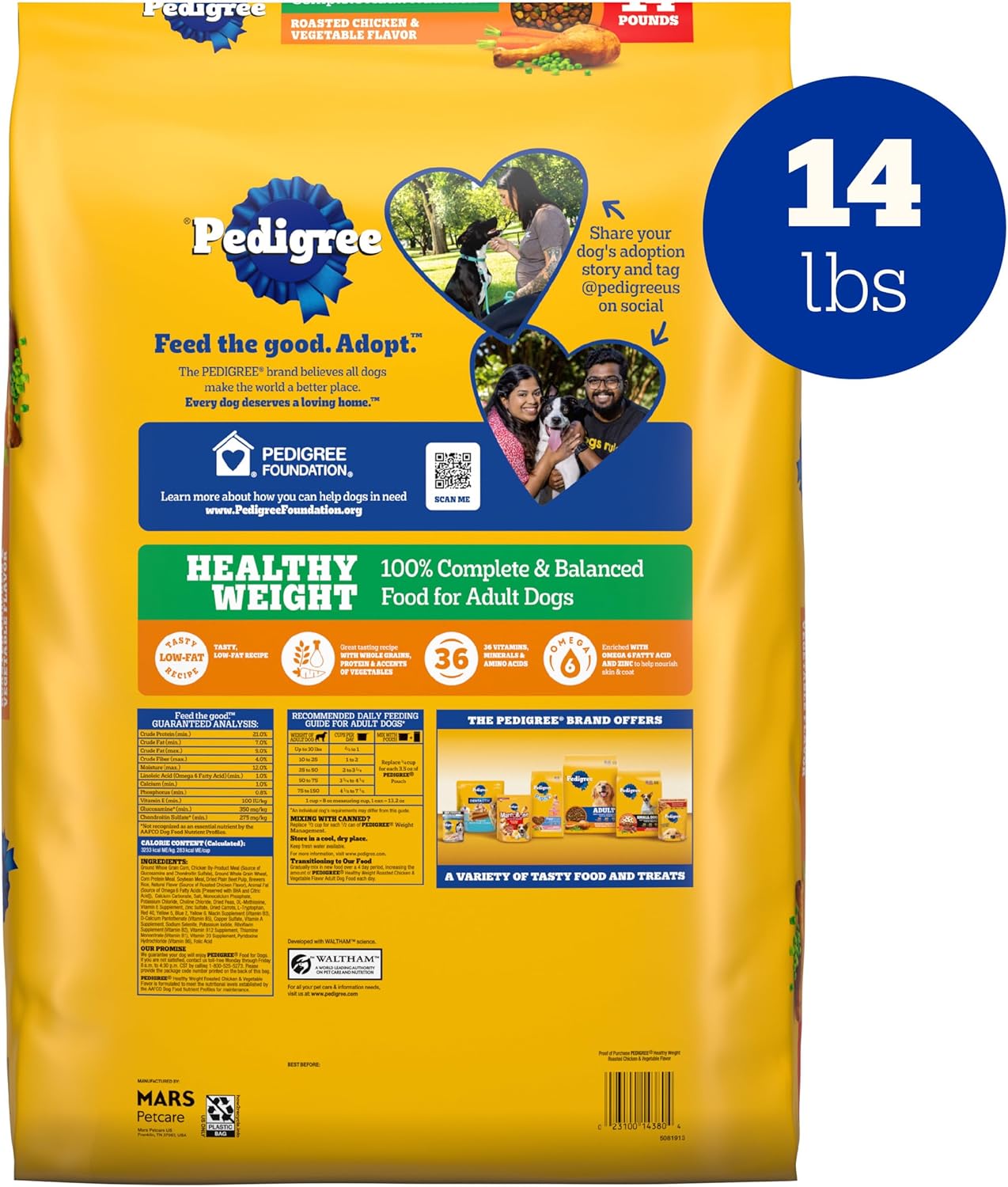 - Contains one (1) 14 lb. Bag of Pedigree Healthy Weight Adult Dry Dog Food, Roasted Chicken and Vegetable Flavor.