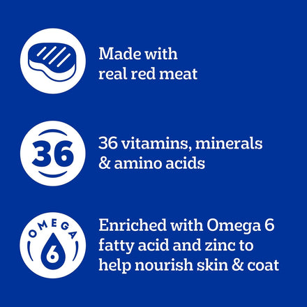- Made With Real Meat: This dry dog food recipe is made with real red meat and 25% more protein compared to Adult Complete Nutrition, giving your dog a familiar flavor they will love.