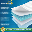 - PREMIUM MATERIALS: Our dog pee pads are made with a 5-layer protection system, each layer is selected from premium materials. It includes a protective surface layer, two-ply water-absorbent paper tissue, a super absorbent core, and a leak-proof PE film. These pet training pads will not tear, stick or leak easily during use. They can provide 24-hour all-day protection.