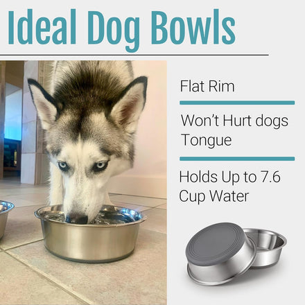 - Dimensions & Capacity: 8.0" without lip, 8.5" with lip, 2.6" height. Each Bowl Holds 7.6 cups, ideal for dogs weighing between 30-60 lbs