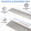 - Fácil de desenredar y desenredar: nuestro peine de aseo para perros cuenta con dientes largos adicionales que están diseñados para desenredar y eliminar eficazmente nudos y tapetes del pelaje de tu perro.