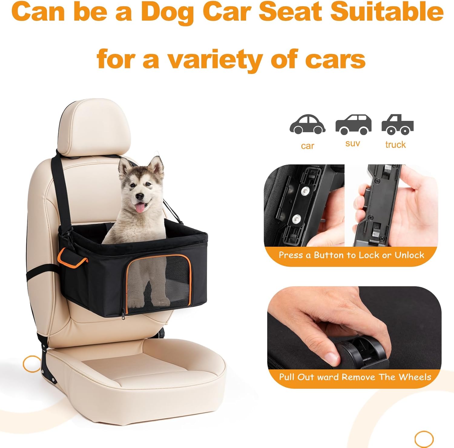 - EASY DISASSEMBLY AND ASSEMBLY: With top and side openings, the pet can get in and out of the bag easily. The dog carriers for small dogs can be assembled and disassembled in just 10s. Press to install wheels and wag to pull out the wheels.