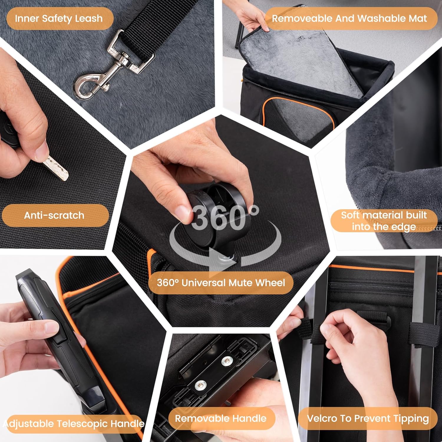 - MULTI-USE TRAVEL PET SUPPLIES: Features handles and shoulder strap for easy pulling and pushing. Put it on the suitcase to save labour when walking, or mount it on a car seat when travelling. Perfect for taking small pets on trips or visiting the vet.