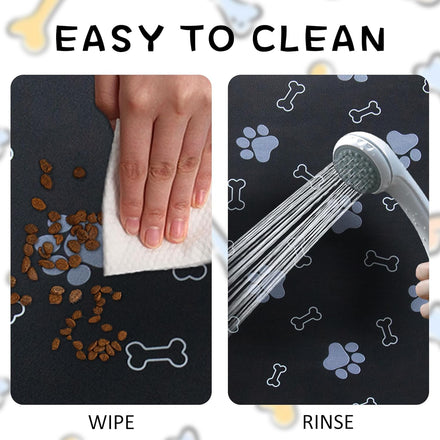 【Super Absorbing & Quick Drying】Our pet food mat is specially designed with a super absorbent material that quickly absorbs any spilled water, the innovative quick-drying technology used in our pet food mat ensures that it dries up fast, helping to keep your floor clean.