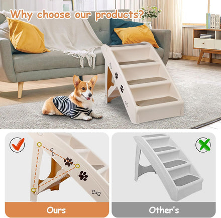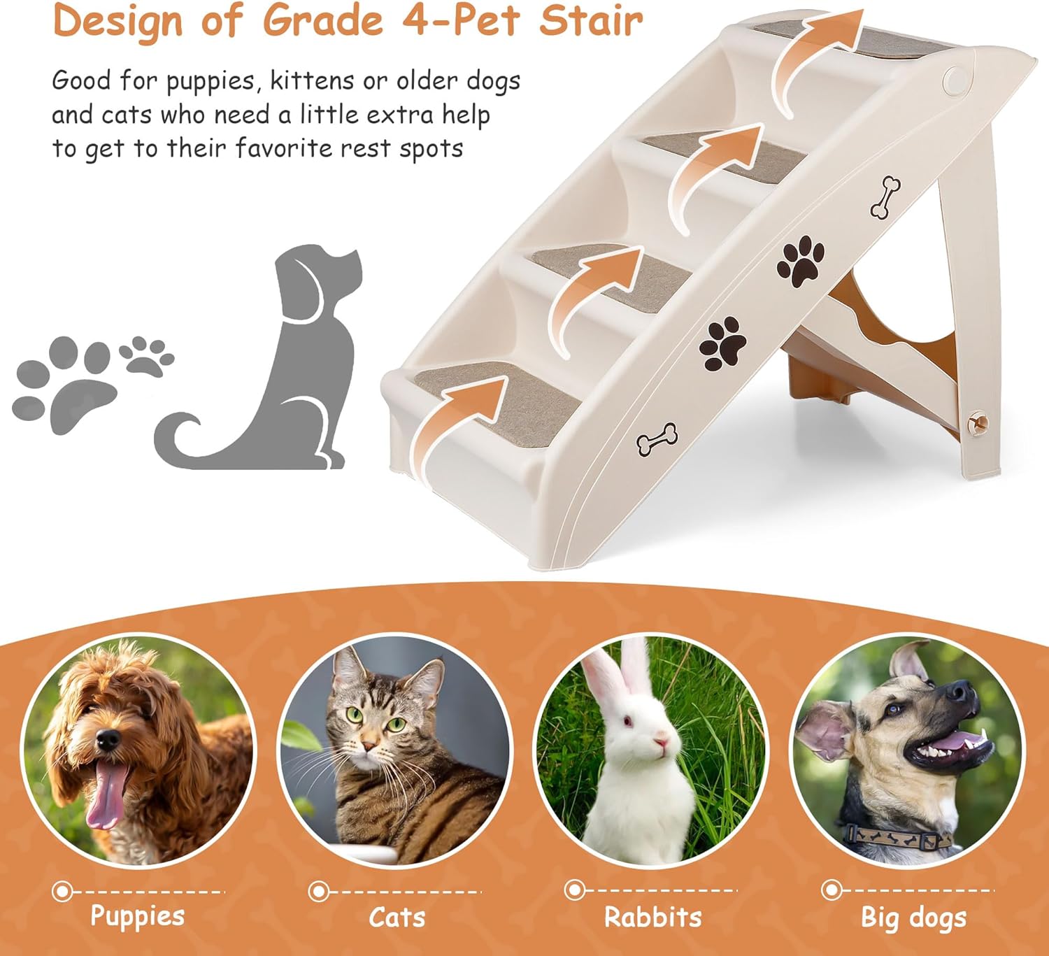 - The Pet Stairs are the perfect way to help your little pup reach their favorite spot with ease! No more jumping or struggling, It makes their life more comfortable and easier! Your little friends will love this 4 step dog stairs
