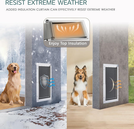 - Experience Superior Insulation: Our 3-flap pet door for walls boasts advanced insulation technology, making it 50% more effective than traditional doors. Equipped with magnetic closures and an iron closing panel, it provides superior protection against weather and drafts, keeping your home comfortable and energy-efficient all year round.