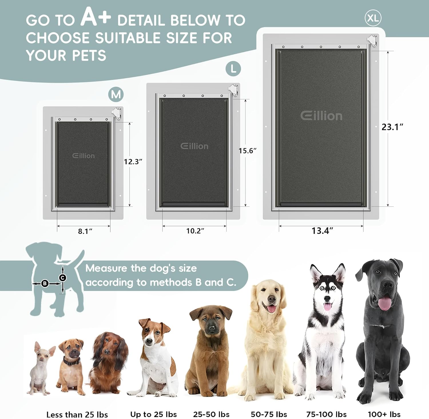 - Unleash Your Pet's Inner Explorer: Give your pets the freedom they deserve with eillion's medium dog door for walls! Perfect for both dogs and cats, our wall dog door lets them come and go as they please, eliminating the hassle of scratched doors and constant barking to get out. Enjoy greater peace of mind knowing your furry friends can safely explore the outdoors and return home whenever they want.