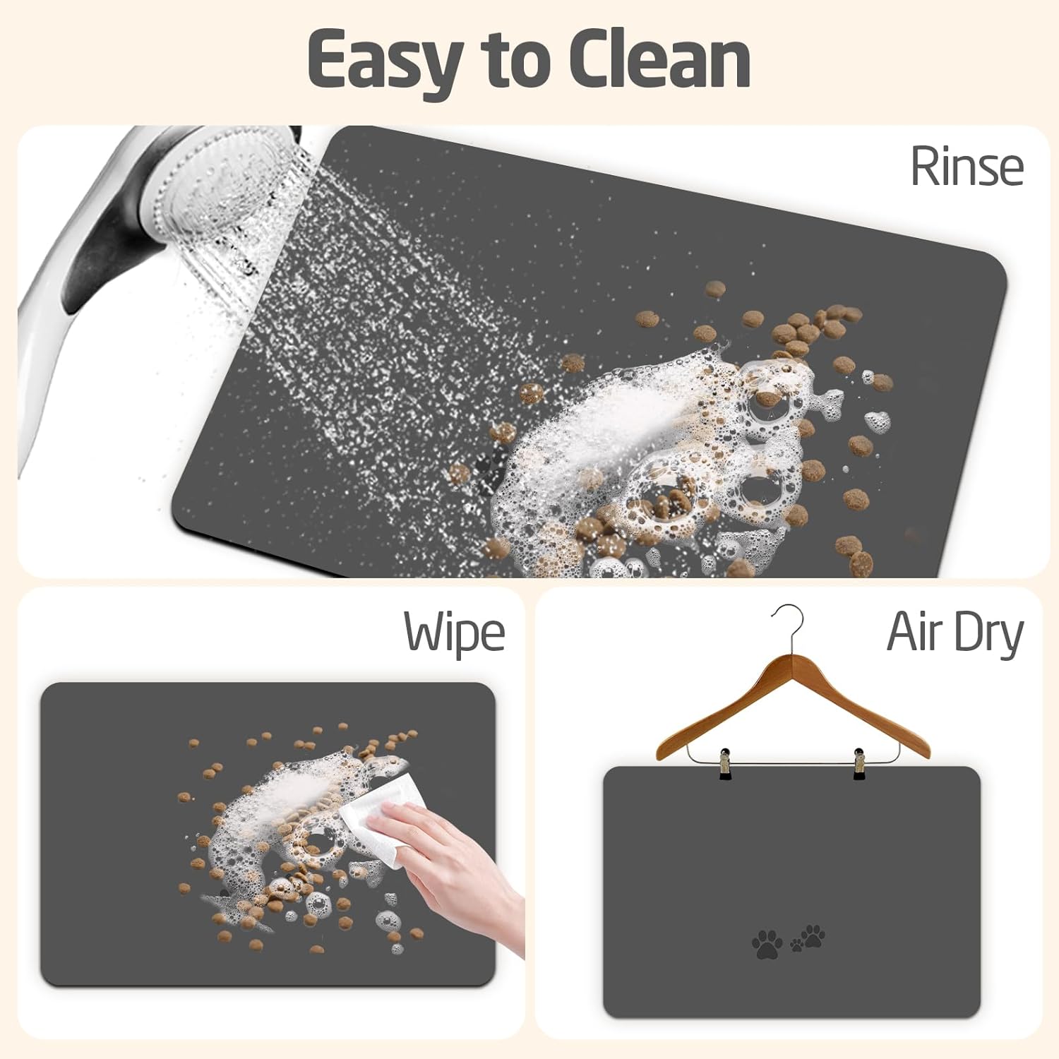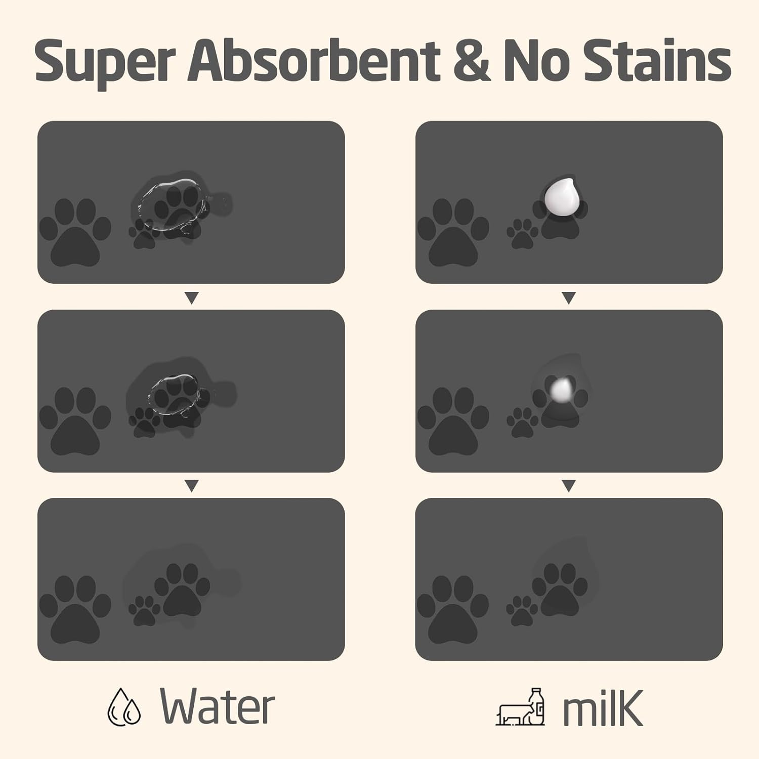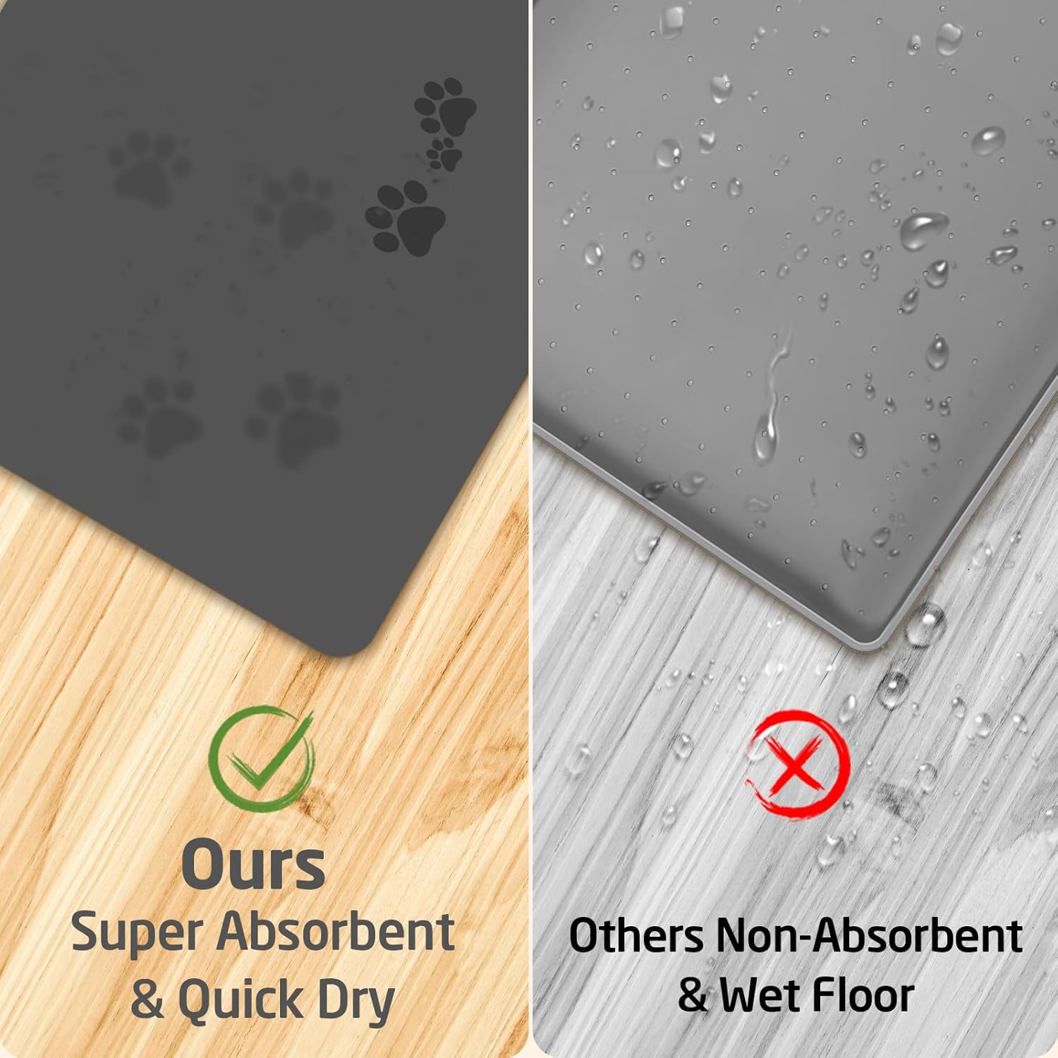 - ♔ Super absorbent and Fast dry:This pet food mat Can quickly absorb spilled water and milk without leaving any marks, no need to manually pour water, avoid wetting pet paws even for messy drinkers. Keep the pet's eating environment tidy and clean.