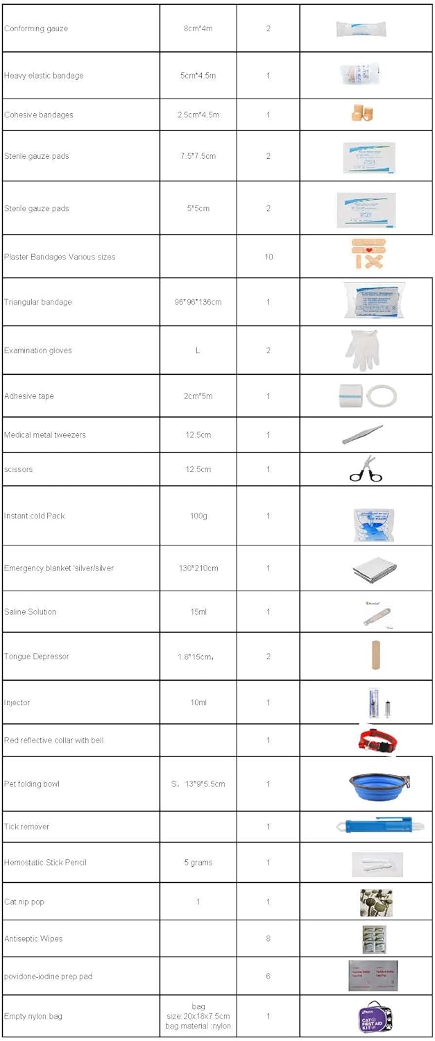 The Rayco Cat First Aid Kit is a new product to go along with our Pet First Aid Kit. Like our Pet First Aid Kit it is also a handy item for the responsible cat owner. Our new Cat First Aid Kit is used for everyday tick removals, insect bites, stopping small cuts from bleeding or in an emergency until you can visit the veterinarian. It is super handy to grab when traveling, evacuations due to natural disaster or simply having it handy in your car. Our Cat First Aid Kit is so compact that it can also easily be stored; and still have plenty of room to add your own items. It comes with all the necessary essentials you need and is unique to our kit, a Red Reflective Collar with bell (Adjustable kitty size), saline solution, styptic pencil, Tick removal tool, and we included a Cat Pop for kitty pleasure. This is a new item and we would love hear feedback from you to help improve all of our products! 51 pcs total.