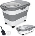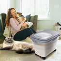 - 🐱【Airtight Lid & Detachable Wheels】: Sealed by 4 latches and silicone sealing ring, the flour storage container is airtight to keep the kibbles dry and fresh, and the desiccant slot inside the lid will also help to keep the food dry and keep the pest out. The 4 detachable rolling wheels make it easier to move around the container even when it's full, and it lifts the dog food bin up to aviod the moisture from floor.