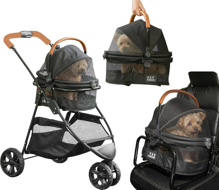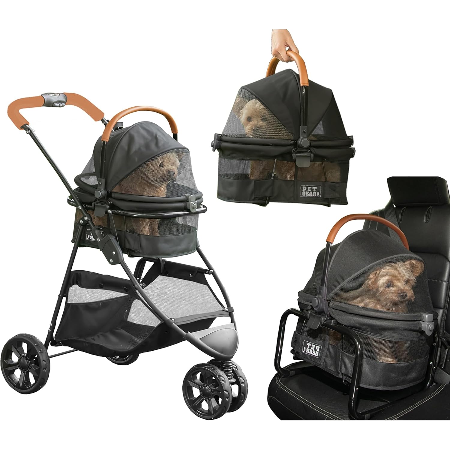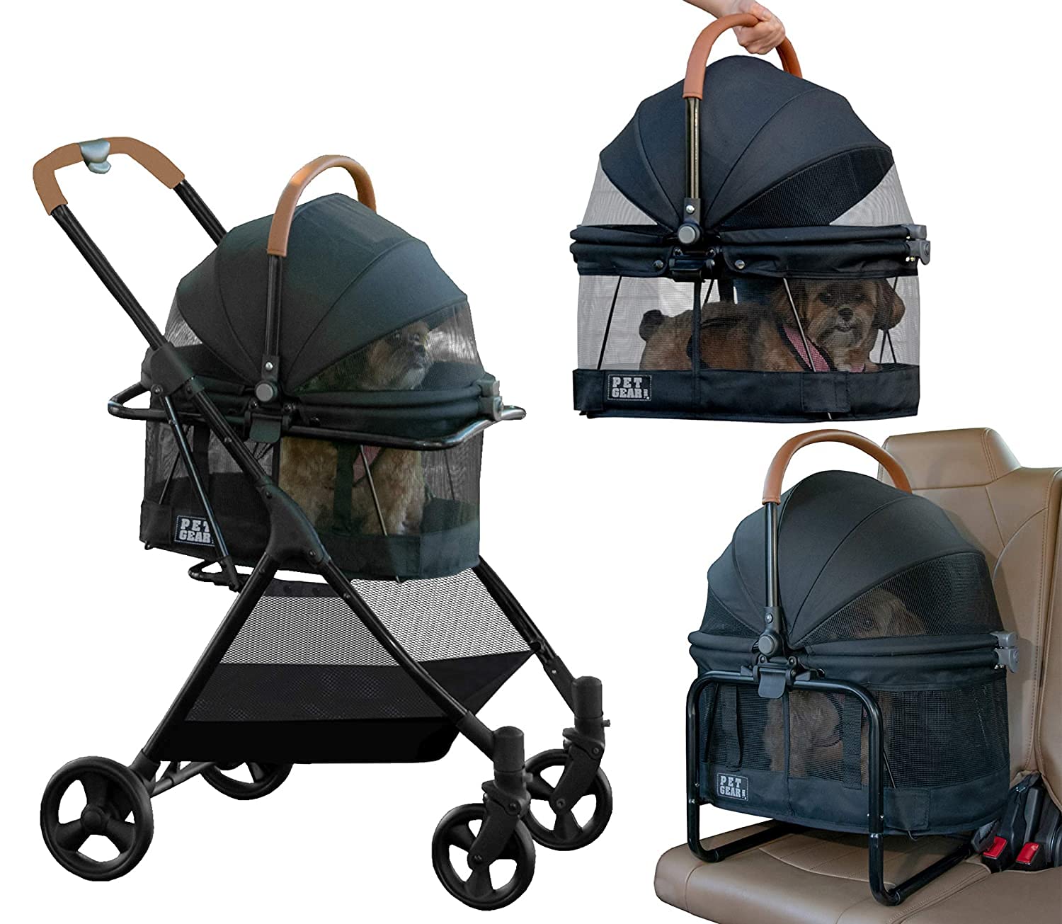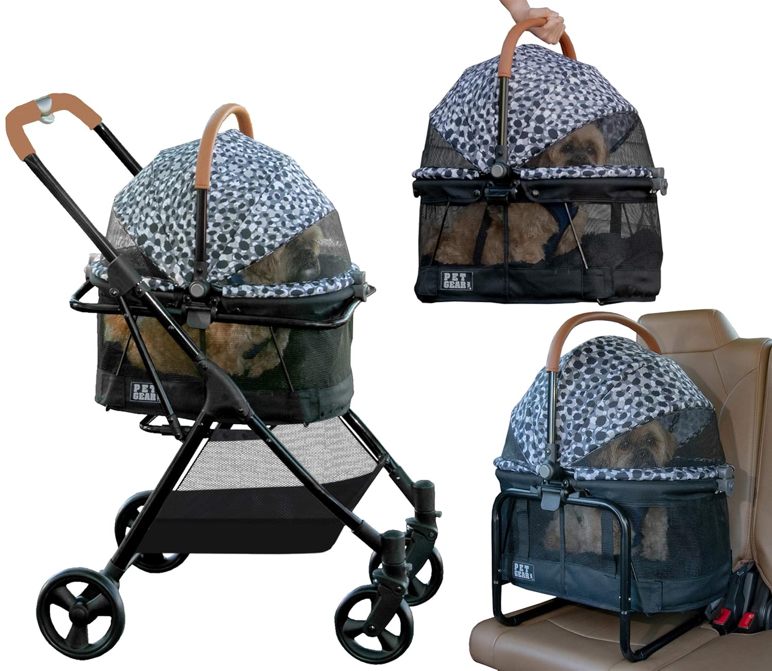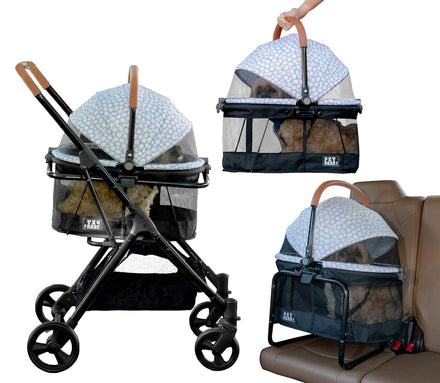Meet the pet travel system of your dreams! The VIEW 360 Stroller, Booster and Carrier Travel System is a 3-in-1 travel system which means that it can convert from a carrier to a booster seat to a stroller in seconds. The carrier itself has a push button entry located on each side of the carrier giving you easy access to your pet without fumbling with difficult zippers. It features mesh ventilation all the way around so your pet won’t miss any views while you travel. A removable, washable pad and interior tether are included to keep your pet comfortable and secure. The carrier is lightweight and has a padded carry handle to make traveling with your pet a breeze. It also features click n’ go technology which means you can attach it to the included booster seat frame or stroller frame in seconds, no tools required. The VIEW 360 Stroller, Booster and Carrier Travel System makes travelling to any destination easier than you ever thought possible!