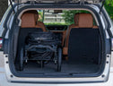 Our new NV Pet stroller was created by combining all of the best features from our other great strollers. The end result? A top-of-the-line pet stroller that everyone will envy. NO-ZIP push-button entry allows you to gain access to your pet without fumbling with difficult zippers! The NV Pet Stroller also features an elevated paw rest. Your pet can easily look out of the stroller by using the front bar for support. This stroller navigates over rough terrain with ease, whether jogging or strolling, thanks to the front locking wheel. Speaking of strolling, the new panoramic view window allows your pet to remain safe inside of the stroller without missing any sights along the way. This stroller also features a plush bolster pad, weather cover, 12" Quick-release no-flat gel tires, and new stylish colors and embroidery, what more could a pet want!