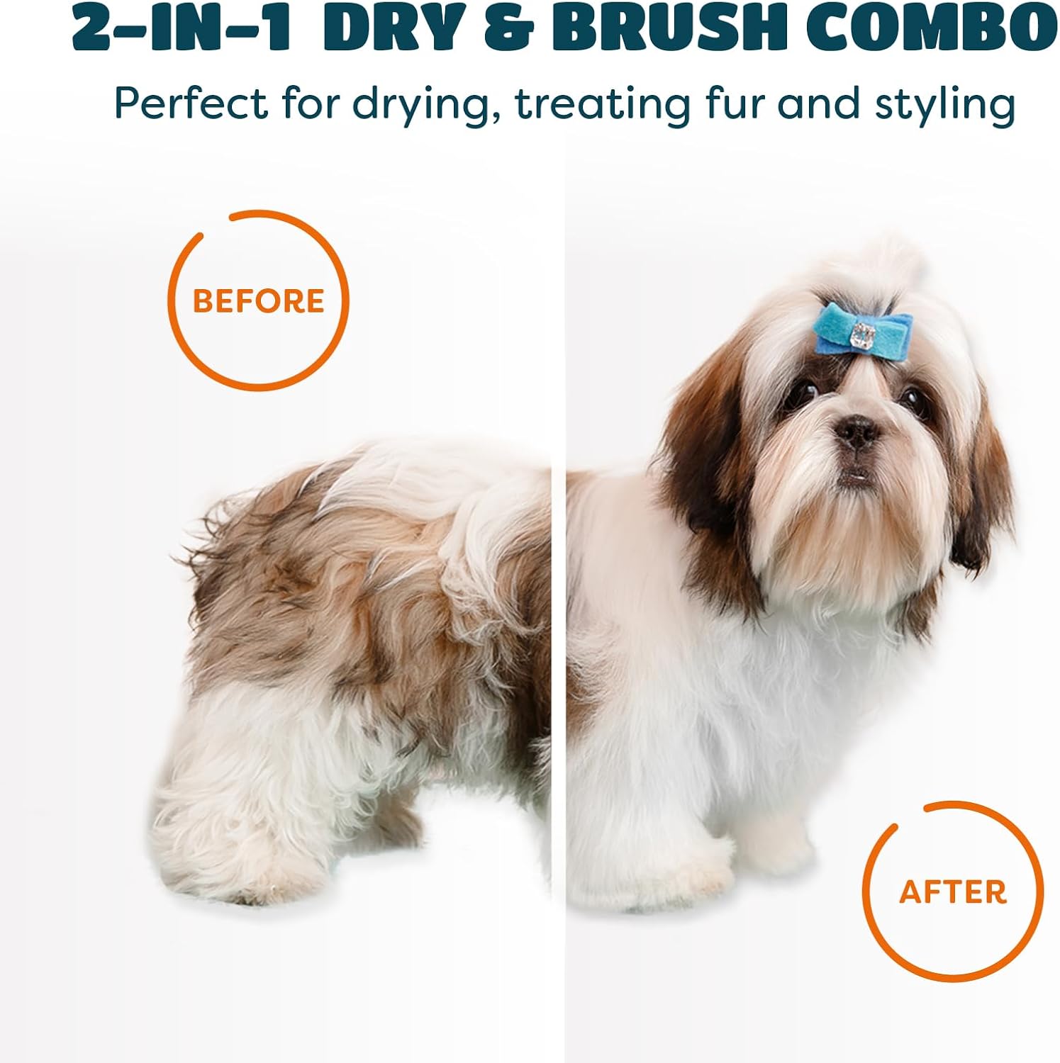 - 【Dryer & Brush in One】This versatile 2-in-1 pet grooming dryer is the perfect solution for drying your pet with gentle care. Ideal after a bath, a walk in the rain, or on chilly winter days, this combined dryer and brush offers warmth and comfort to your dog. With one smooth motion, you can simultaneously brush and dry your pet.