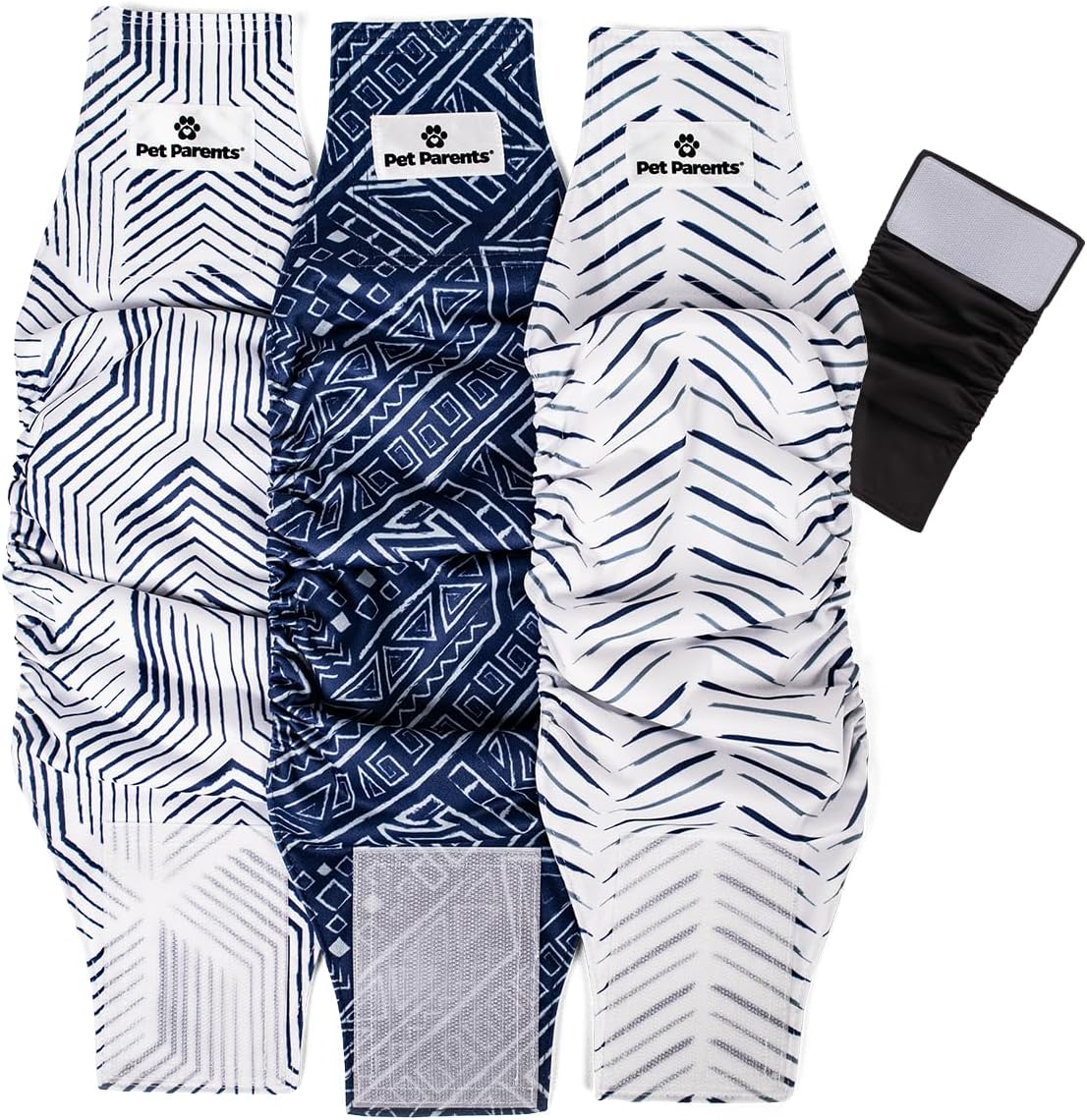 - NOW WITH EXTENDRS - PATENTS PENDING: We designed our Extendrs to give an extra inch or up to a half size to male dog diapers for a more comfortable fit, to help prevent leaks from stretched elastic, & to help diapers for dogs stay in place. A positive response on our website of a better fit, reducing the need for exchanges or returns lead us to bring a set of Extendrs to every pack of Pet Parents Dog Diaper. Extendrs are exclusive & only available with Pet Parents Washable Diapers & Belly Bands.