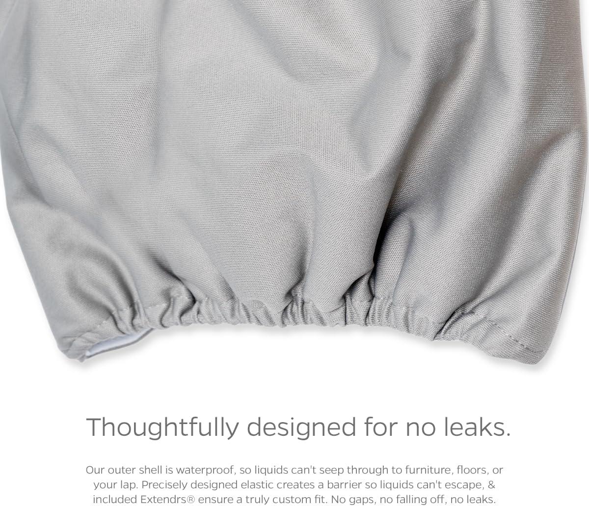 A waterproof outer shell paired with precise elastic creates a barrier so liquids can't escape.