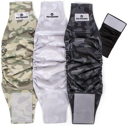 - 3 WASHABLE MALE DOG DIAPERS PER PACKAGE - Our Natural pack comes in a convenient pack of 3 male dog wraps, one black, rust, and grey, so you can have one in the wash, one on your pup, and one on hand, just in case. Pet Parents washable belly bands for male dogs save you money and are safer for the environment than single-use disposable dog belly band.