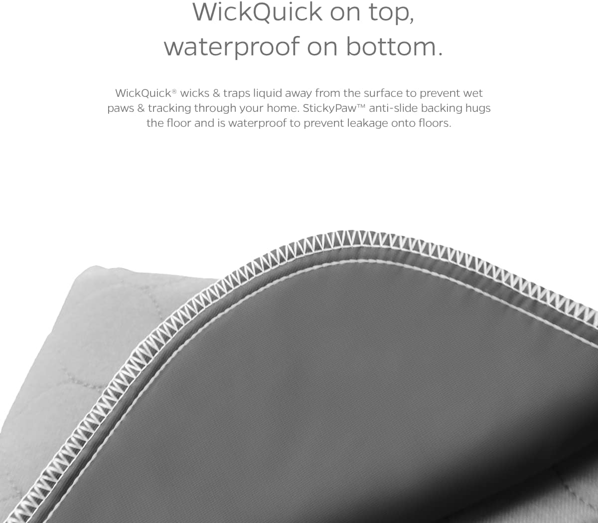 Stop the damage, stop the smell, eliminate the worry. WickQuick material draws moisture into the pee pads for dogs so it can't be tracked, and our waterproof StickyPaw backing provides an anti-slip grip that won't allow moisture to seep through to floors or furniture.