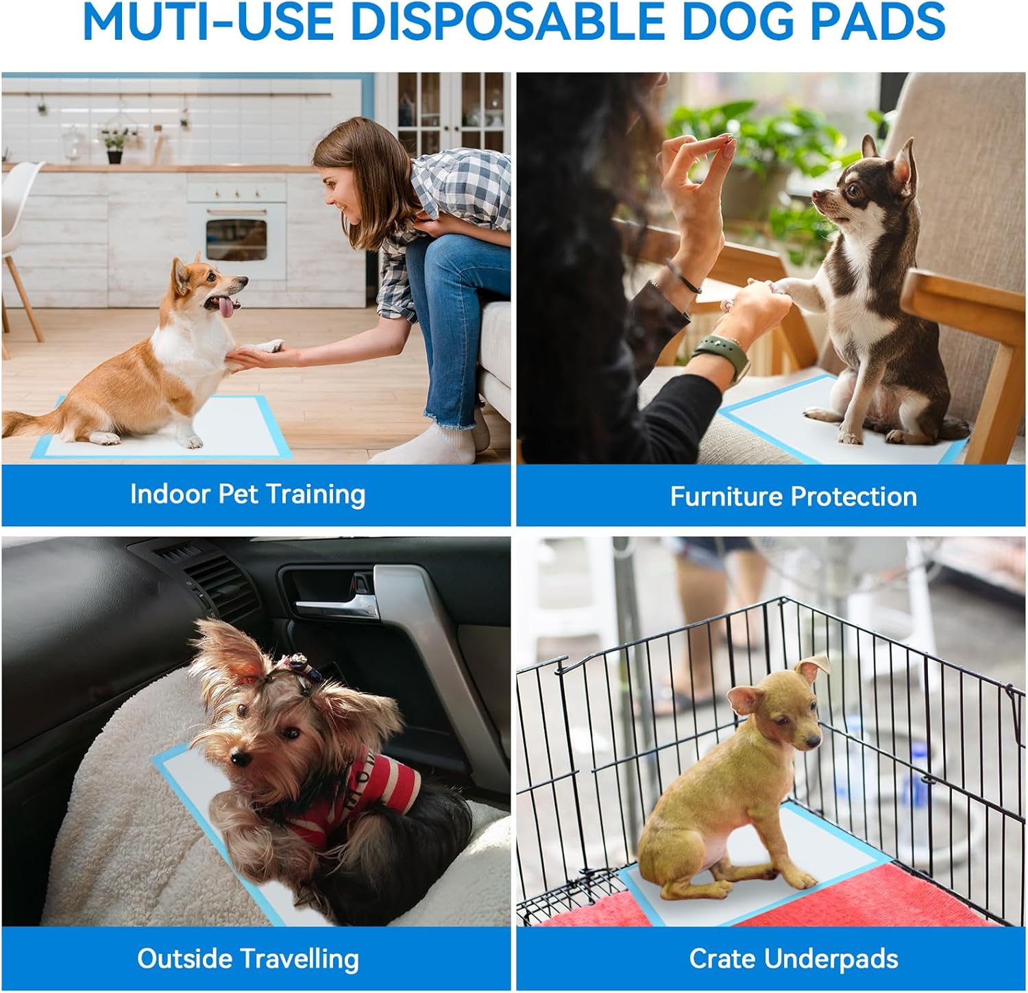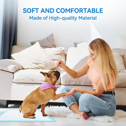 - 【Leak-Proof Design to Protect Your Home】: The bottom of each dog pad is equipped with a PE film, which can effectively prevent moisture leakage and avoid unnecessary cleaning. Even if your dog moves or plays on the puppy pad, urine will not penetrate into your floor, carpet or furniture, keeping your home away from stains. This leak-proof design is especially useful for puppies or elderly dogs who may urinate frequently, providing them with a clean and hygienic space