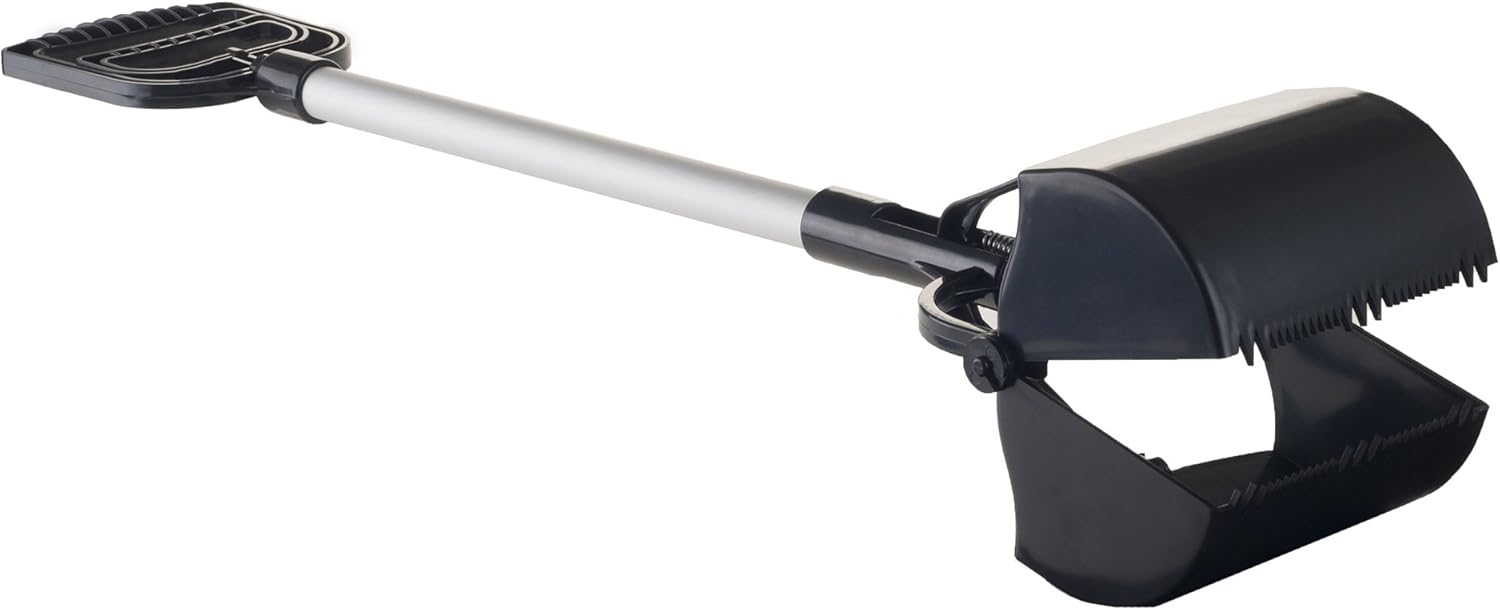 - RELIABLE BUILD - Heavy-duty springs on this poop scoop keep waste in place during the transition from the ground or litter box to your disposal bag. Count on the sturdy aluminum handle and durable, grip-style open-and-close mechanism for reliable use.