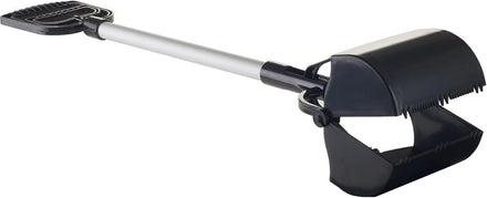 - SANITARY OPERATION - A long handle on this dog and cat pooper scooper keeps distance between you and pet messes. Easy gripper operation and large scooper jaws with serrated edges let you pick up poop indoors and outside without ever touching it.