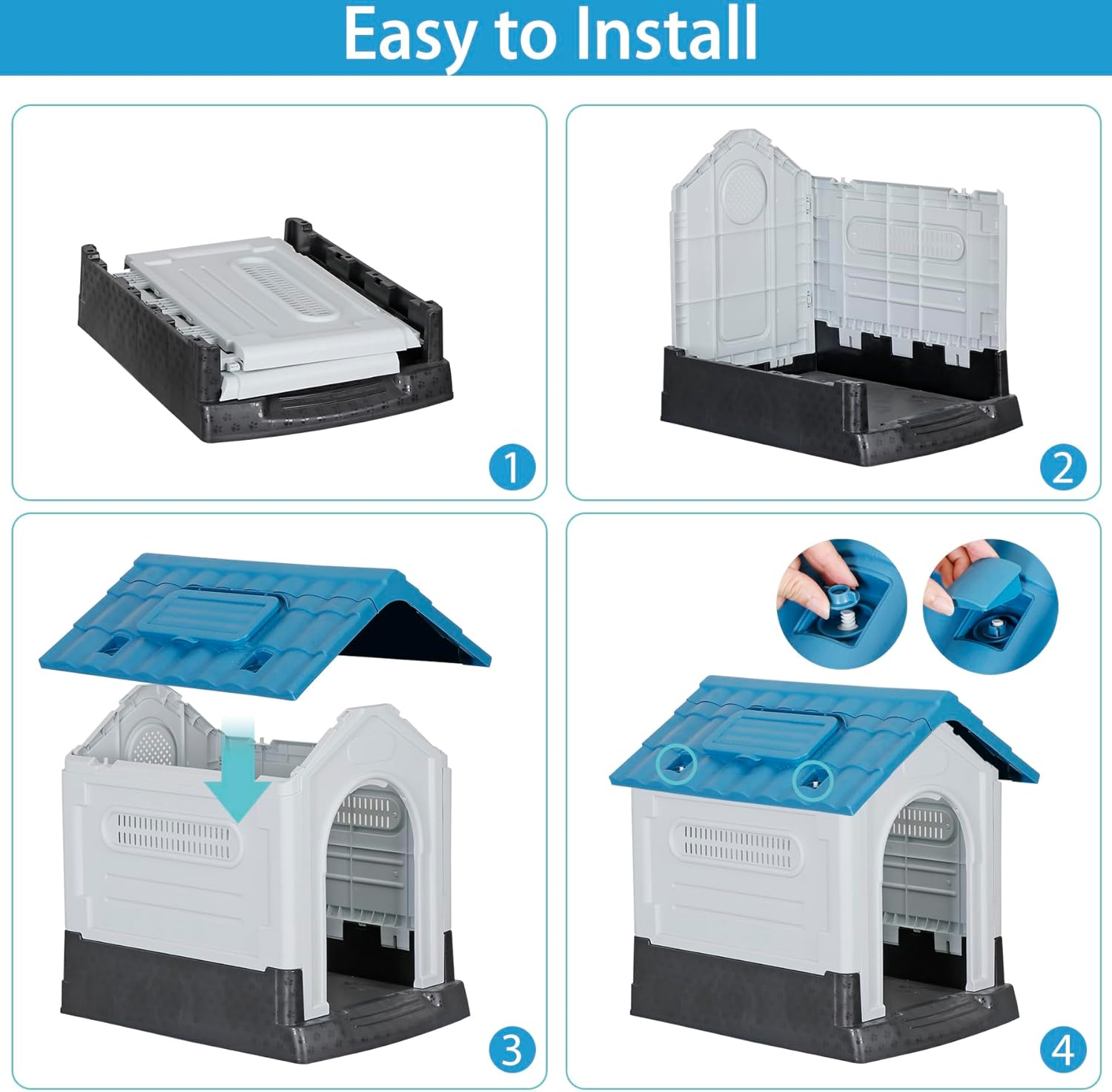 - Durable Material and Waterproof Roof: Made of waterproof PP plastic and heat insulating materials, your puppy will feel warmer if you put a blanket on the house in winter; Features anticorrosion and weather resistance, the sloping roof design drains rainwater quickly and protects the kennel from heavy rain; your lovely dog will be safe even in storm