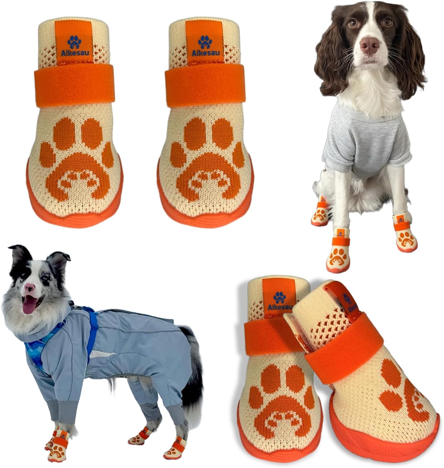 - All-Day Comfort: The breathable knit mesh upper allows air to circulate freely not stuffy,keeping your dog’s paws cool and dry even in hot weather, reducing the risk of overheating and discomfort.keeping the dog's feet fresh and eliminating and other odors at home.