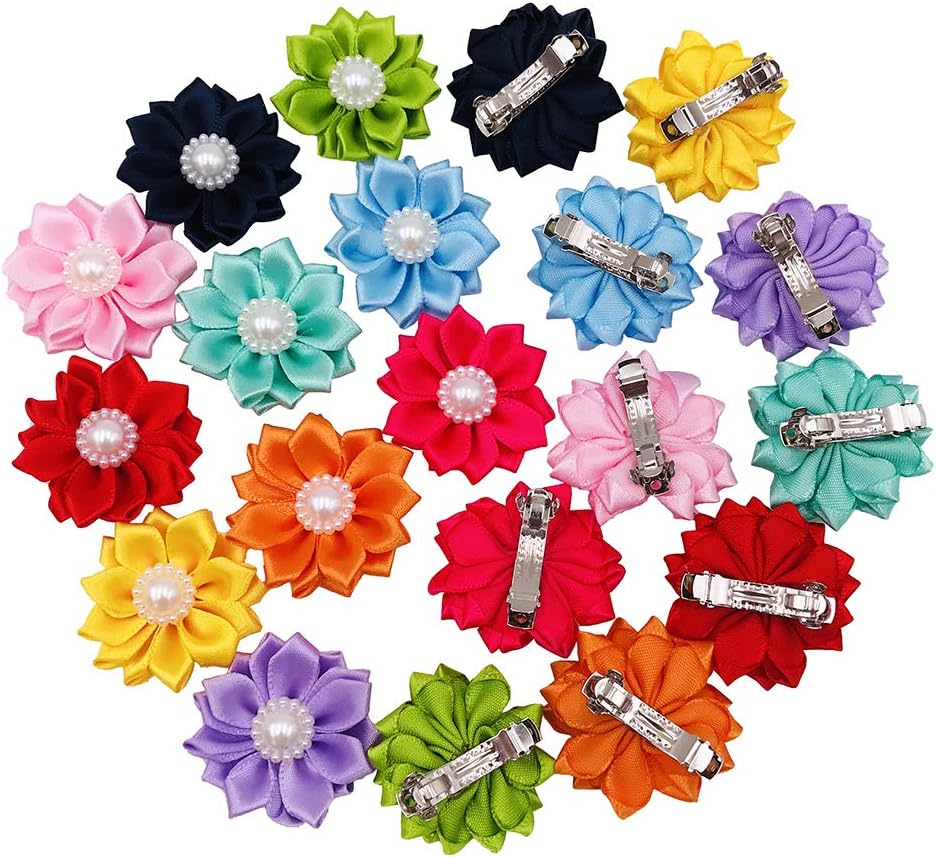 - Flower Pet Small Dog Hair Bows with French Barrette hair clips perfect for any occasions.
