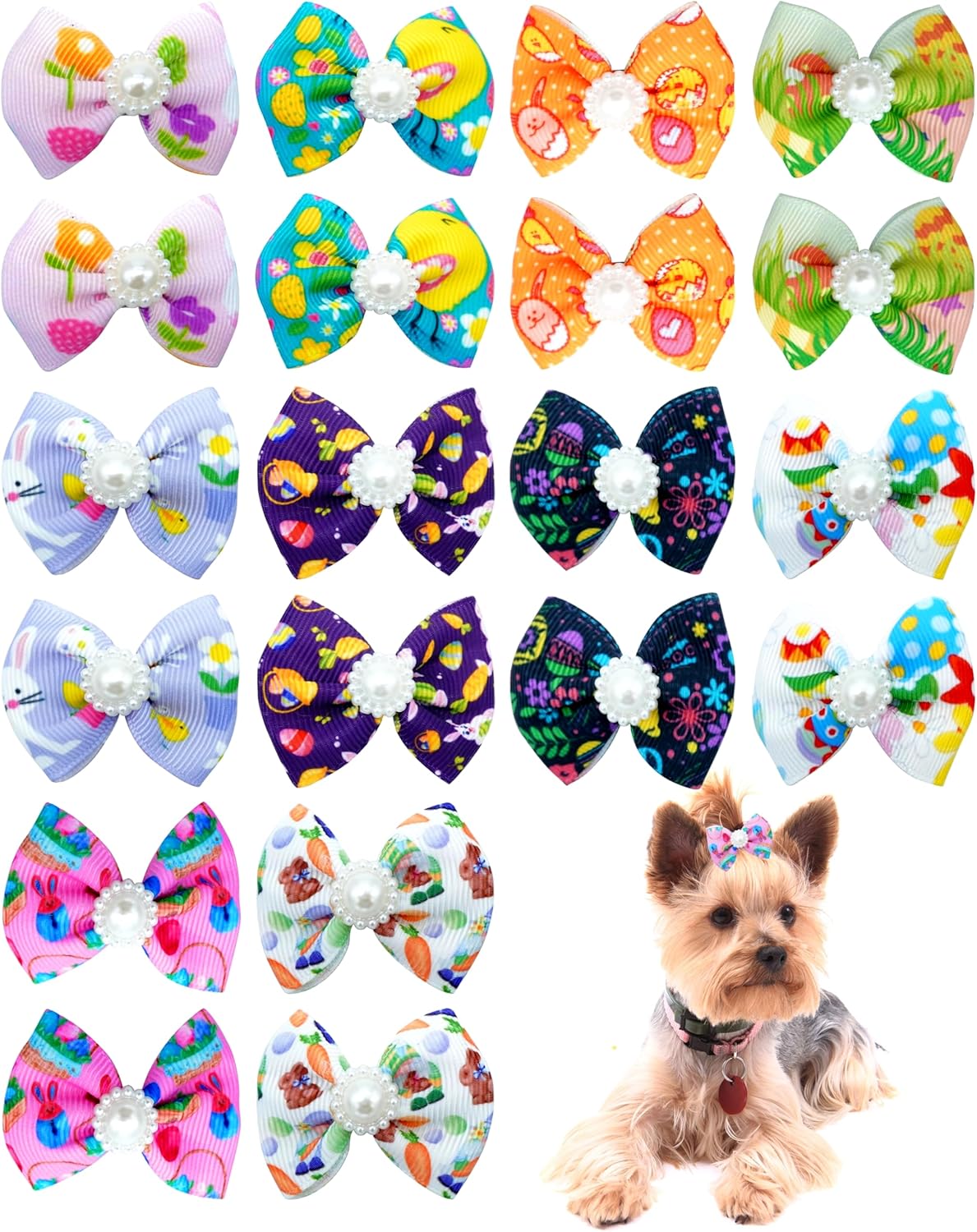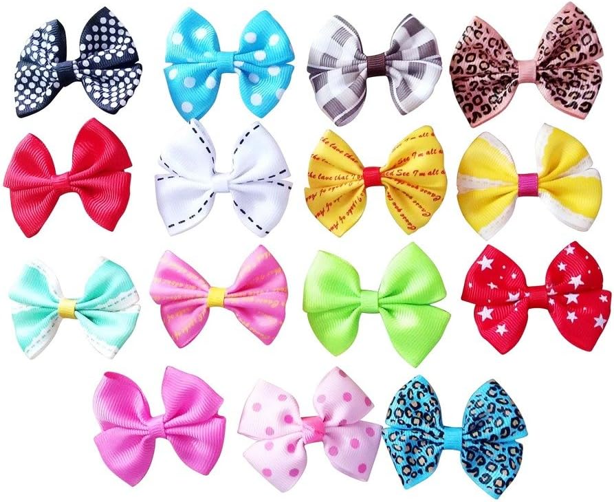 PET SHOW 20pcs Dog Hair Bows with Alligator Clips Bowknot Hair Clips Cat Puppy Yorkshire Grooming Hair Accessories for Small Medium Large Dogs American Girl Dolls 1. Condition: 100% New 2. Material: High quality cotton ribbon. The dog hair bows clips are very comfortable and durable to wear. 3. Color: random colors make your pet look more fashionable and attractive 4. Size: about 2*2.3 inches for Small Medium Large Dogs, Puppies, Cats, American Girls and Dolls 5. Packet: 20pcs 6. Measured by hand, the size maybe have a little errors. Please understand!