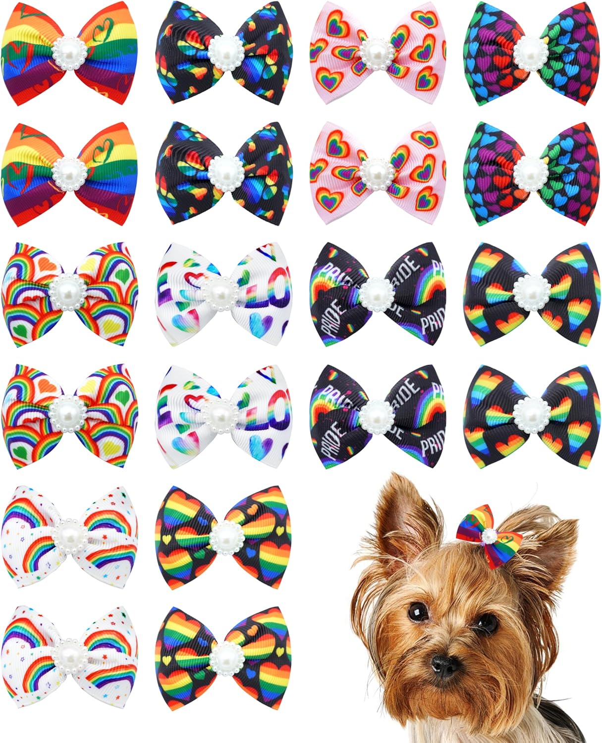 - Using: Those hair bows can directly put on the pets' hair. If your pets can shake them off, please tie the hair by a small rubber band. Then put the hair clips past through the band to get them to stay in.