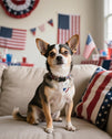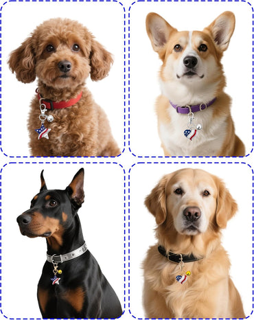 • Package: There are 4 pieces pet collar charms with bell. 2 shapes——star and heart; 2 bells colors—— golden and silver. Our american flag cat pendant has lobster clasp, it's convenient and easy to put on and off. You can freely match according to color and shape, and wear 1 or more cute bell accessories on the pet collar