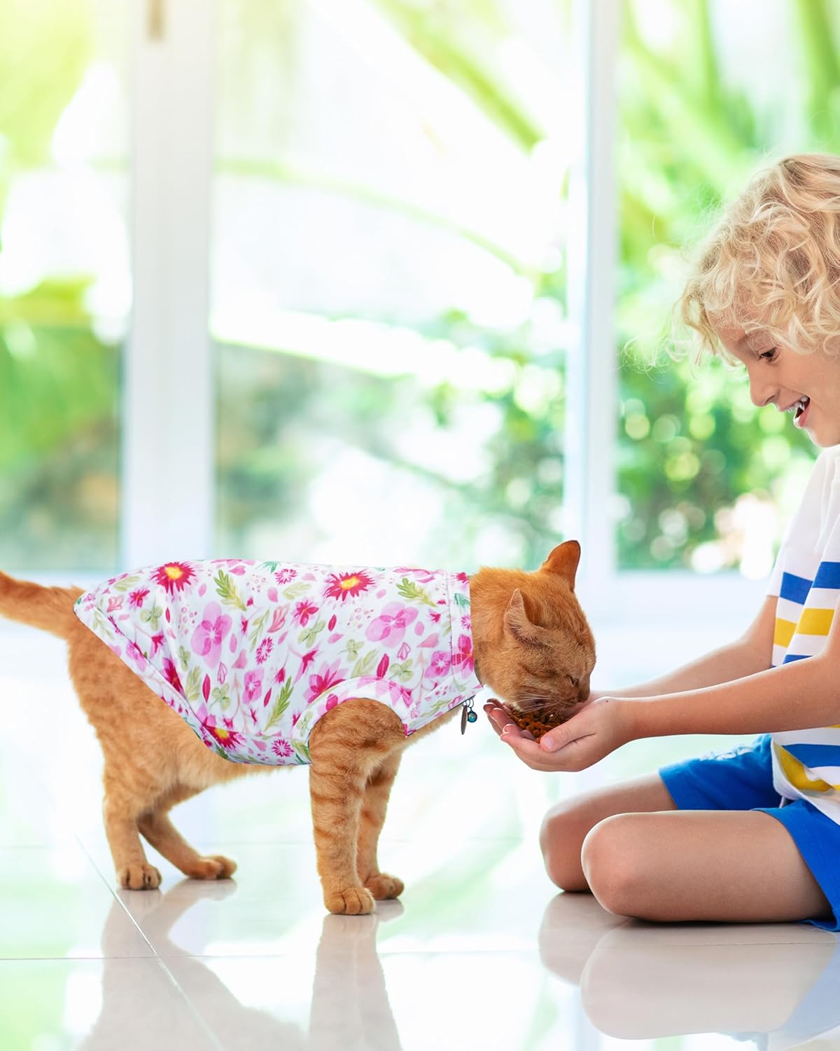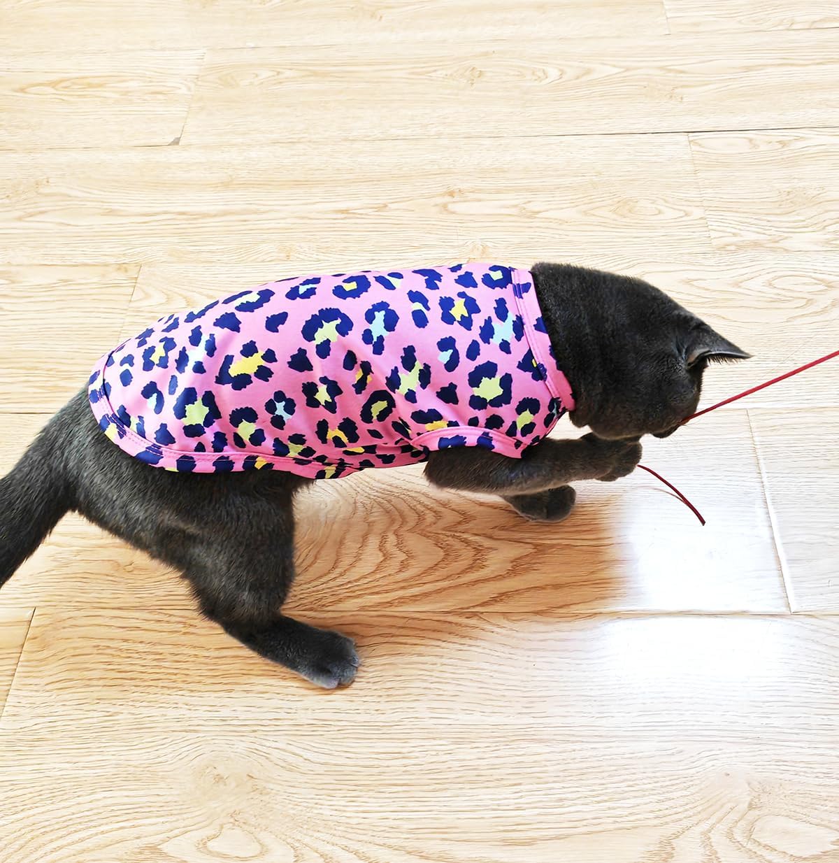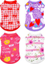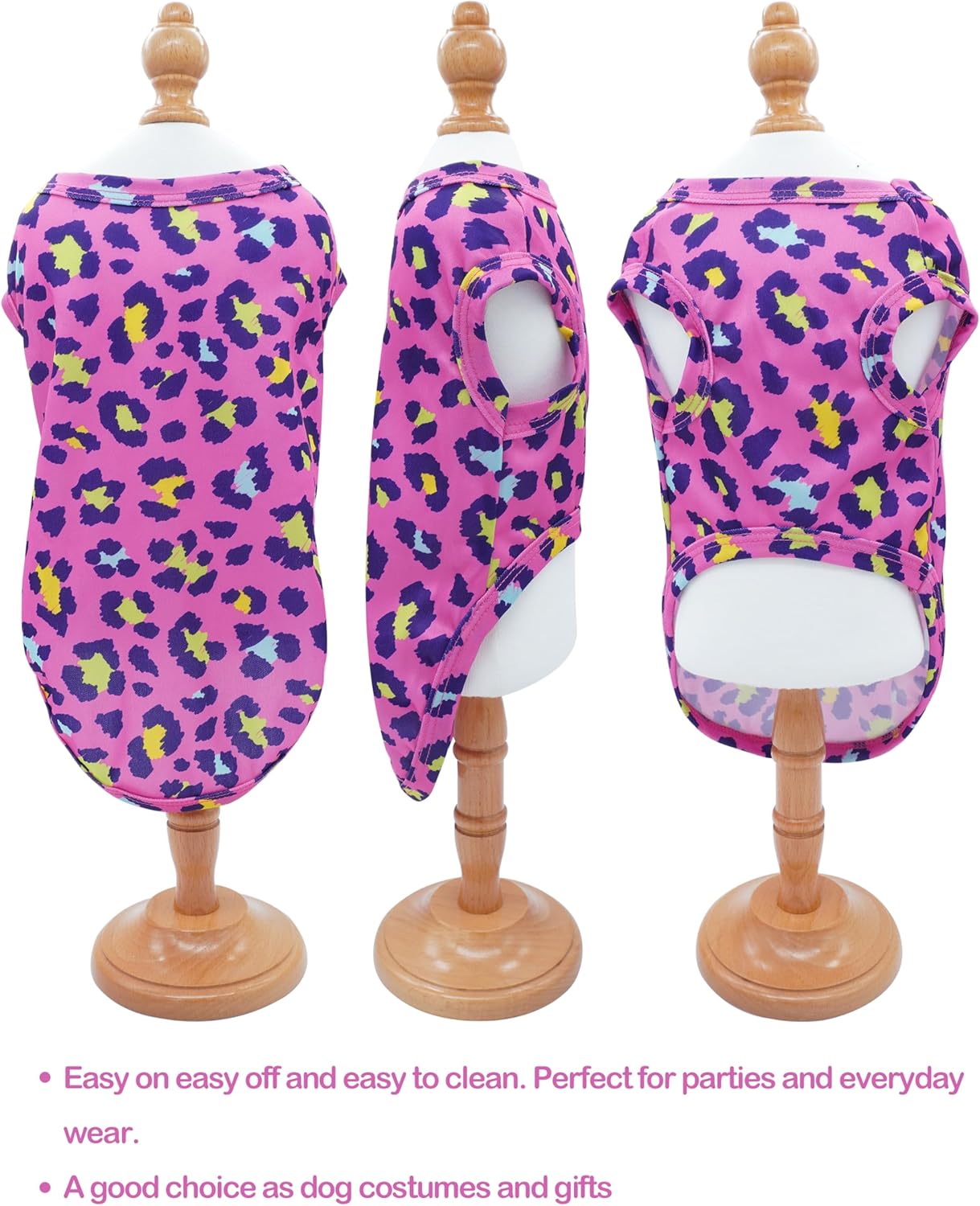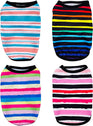 PET SHOW 4 Pack Paw Bone Printed Dog Clothes Soft Dog Shirts Vest Lightweight Sleeveless Cats Doggies T-Shirts Puppy Tank Top Tee Summer Cat Clothes for Small Medium Dogs White Black Pink Blue Material: Cotton blend & spandex, soft lightweight and breathable with some stretchy. Color: Four colors- white, black, pink and blue. Great for unisex cats and dogs- boys and girls. Design: 4 different unique design - paw and bone printed. Size: 5 sizes for adult cats, small medium dogs. XL AND XXL sizes don't fit any large breed dogs. If between size, size up. Please measure your pets' size to choose the exact size before ordering. --S: back length, 10"; chest, 14; neck, 10.5"; fits dog weight, 4.4-8.8 lb. --M: back length, 12"; chest, 16; neck, 12"; fits dog weight, 8.8-13 lb. --L: back length, 13.6"; chest, 18; neck, 13.6"; fits dog weight, 13 -19.8 lb. --XL: back length, 15.6"; chest, 20"; neck, 16"; fits dog weight, 19.8-24 lb. --XXL: back length, 17.5"; chest, 22"; neck, 16.4"; fits dog weight, 24-28.6 lb. Package: 4pcs small dog shirt clothes. Occasions: holidays, birthday party, daily walking, running and so on.