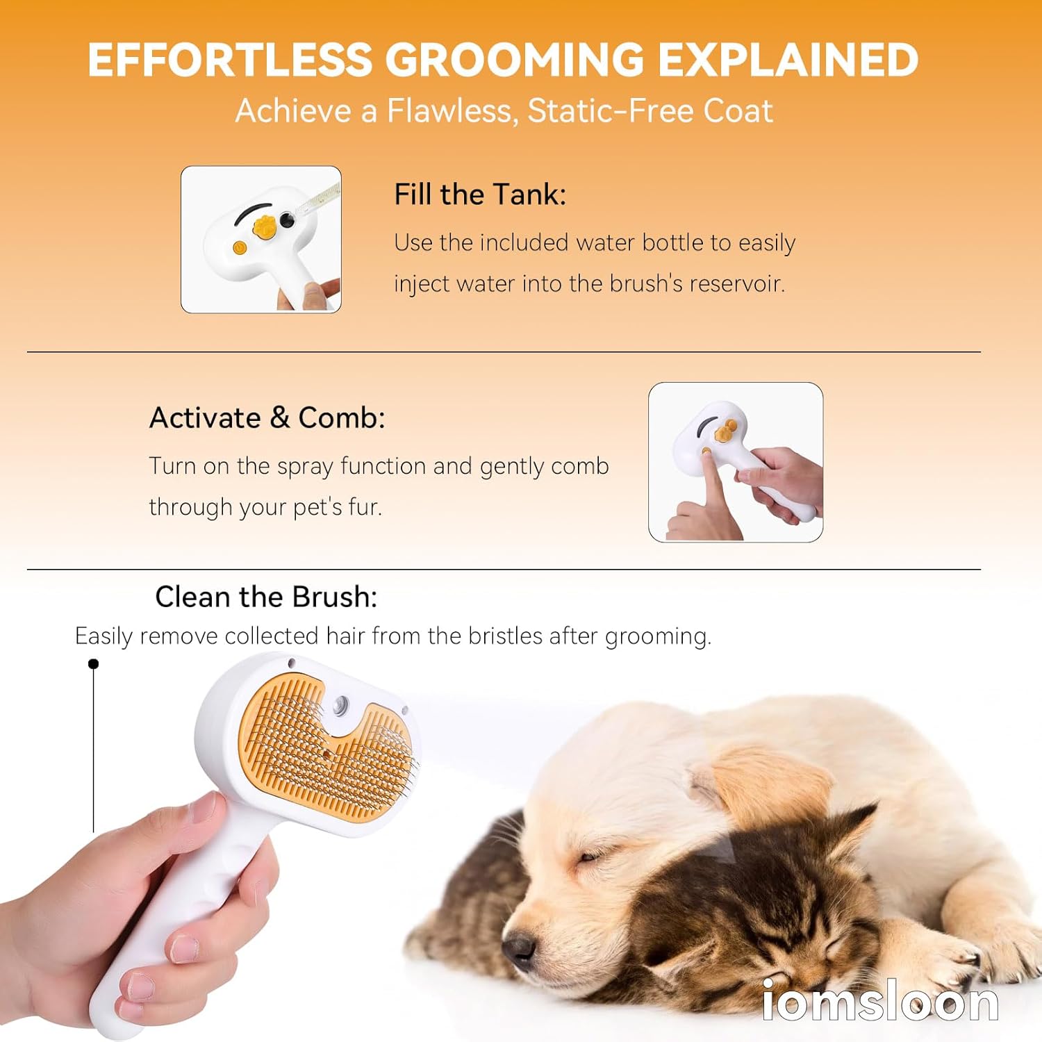 - 【VERSATILE 3-IN-1 GROOMER】: This multi-action pet grooming tool expertly combines deshedding, gentle cleaning, and a soothing massage. It efficiently lifts loose fur and particles from your pet's coat and skin, simplifying your daily pet care routine. Note: The brush produces a cool mist from water, it does not generate heat.