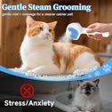 It’s gentle for most pets, but shy or nervous cats may get scared. Introduce it slowly, starting without steam, to help your pet get used to the sound and sensation.