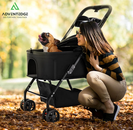 - 🐶 AdventEdge Brand Promise – Quality, Safety & Comfort: At AdventEdge, we are committed to delivering top-quality doggie strollers for small dogs that prioritize your pet's safety and comfort. Our 3-in-1 Foldable dog stroller for medium dogs 30 lbs is designed with durable materials and thoughtful features to ensure a secure and cozy experience for your furry companion