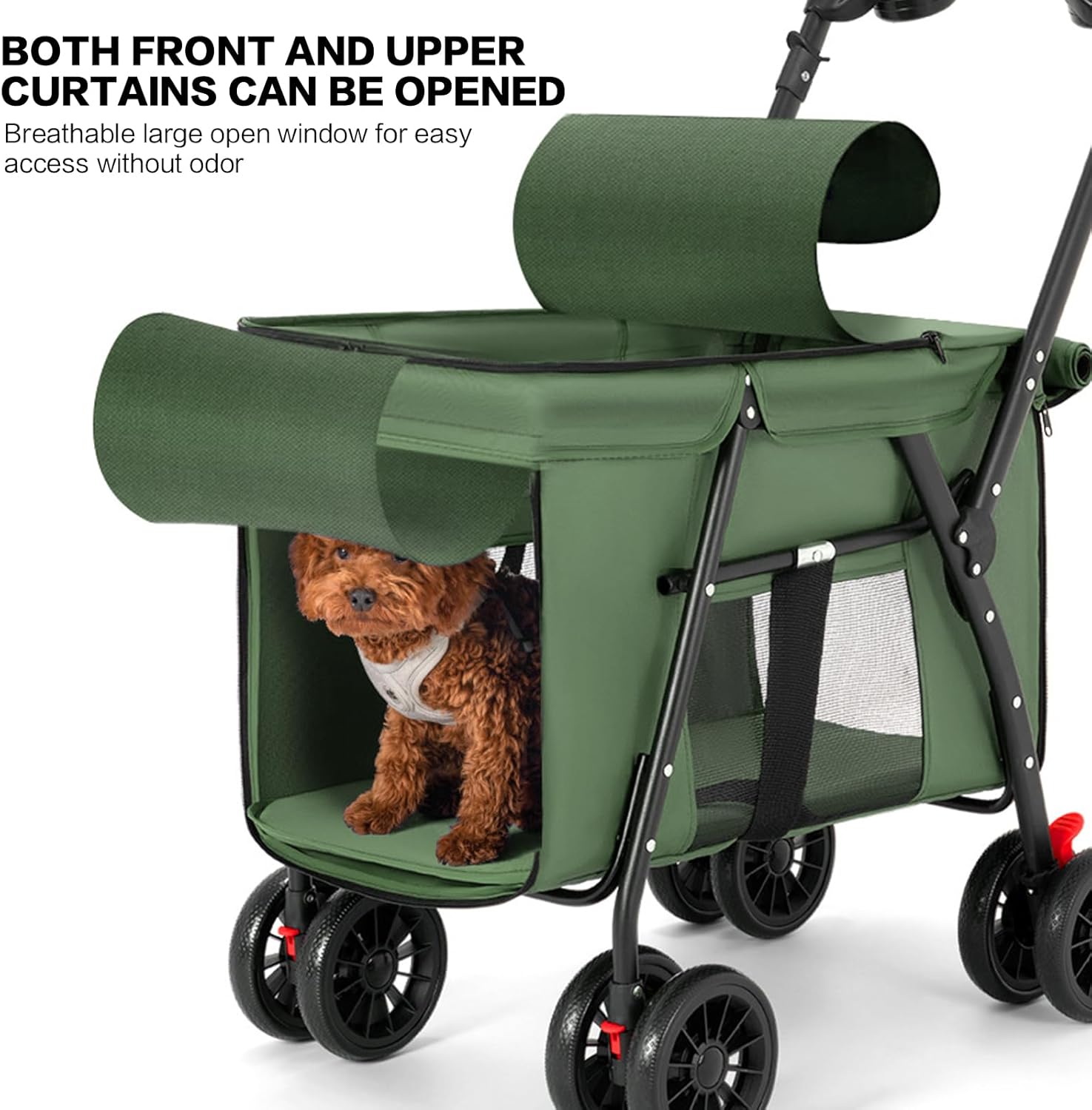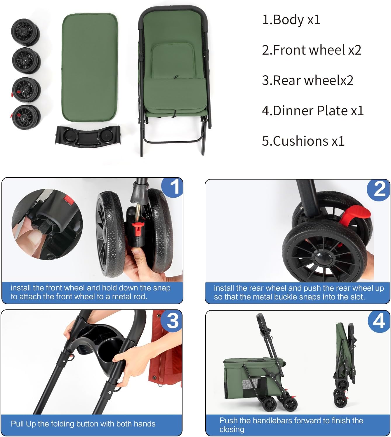 - Easy to Fold for Storage:The pet stroller can be folded by pulling the loop buckles on both sides. Easy to carry and store. The storage compartment can also carry pet drinking water and food.