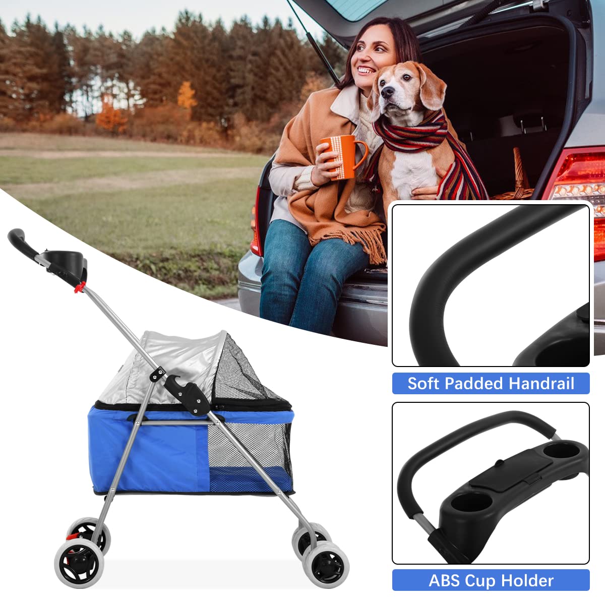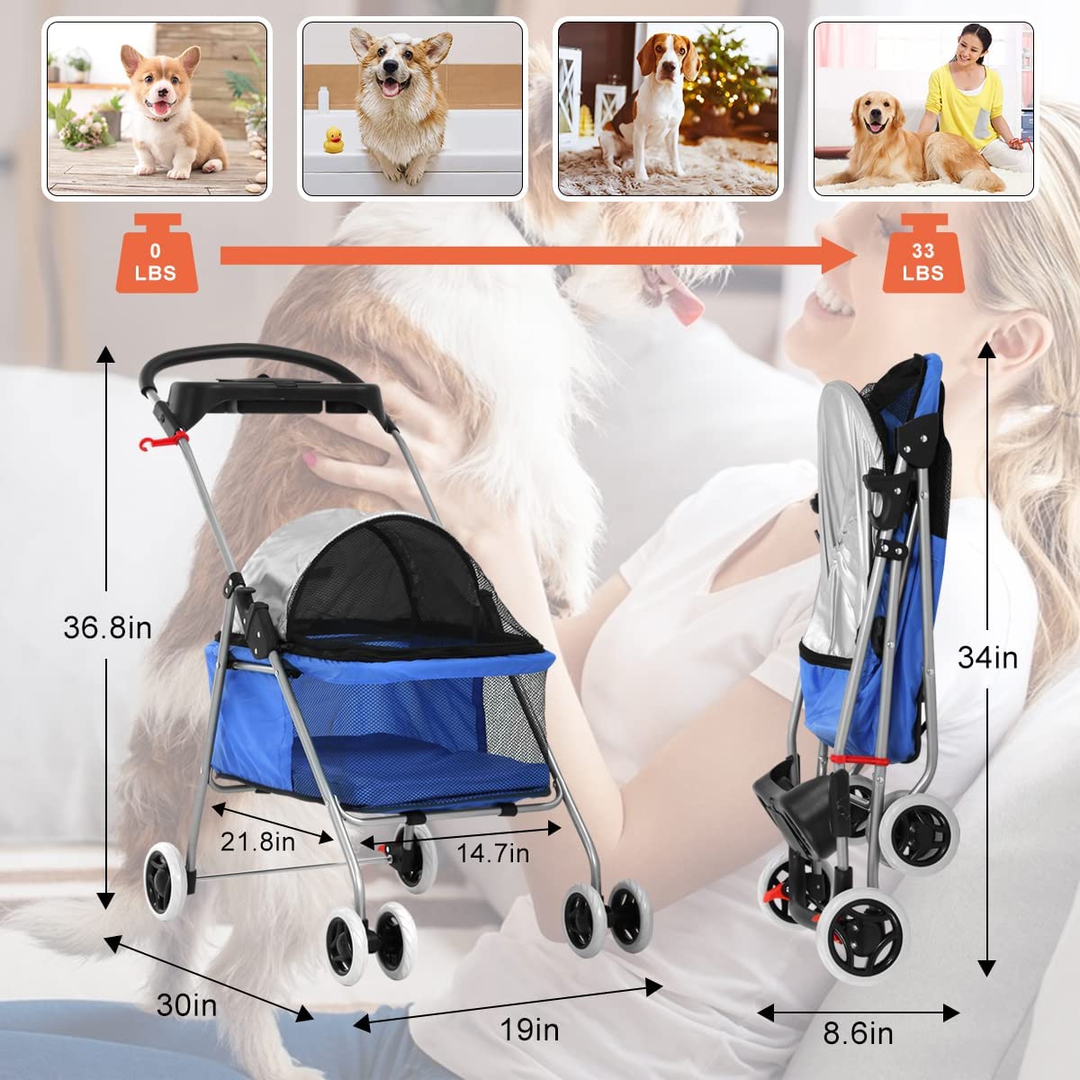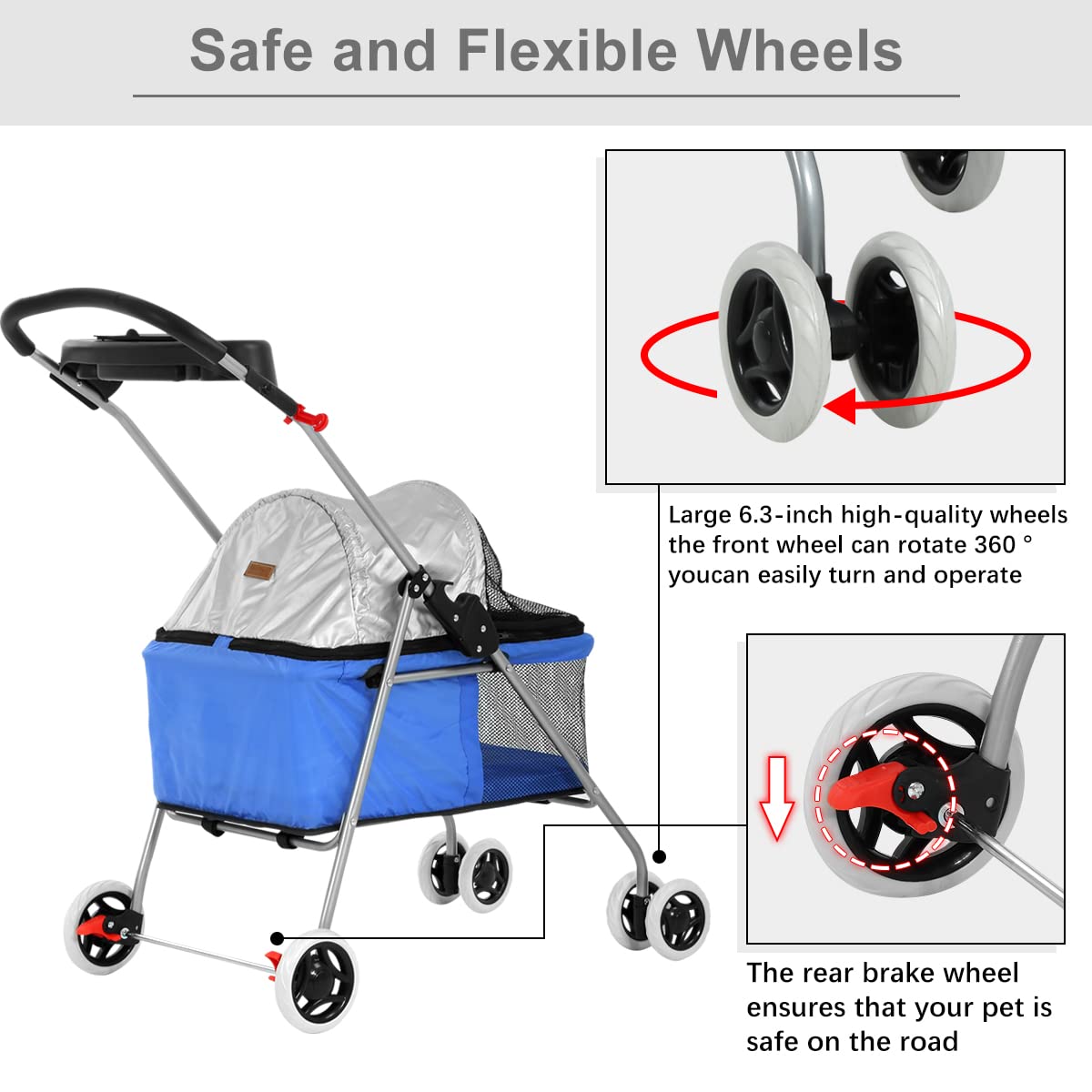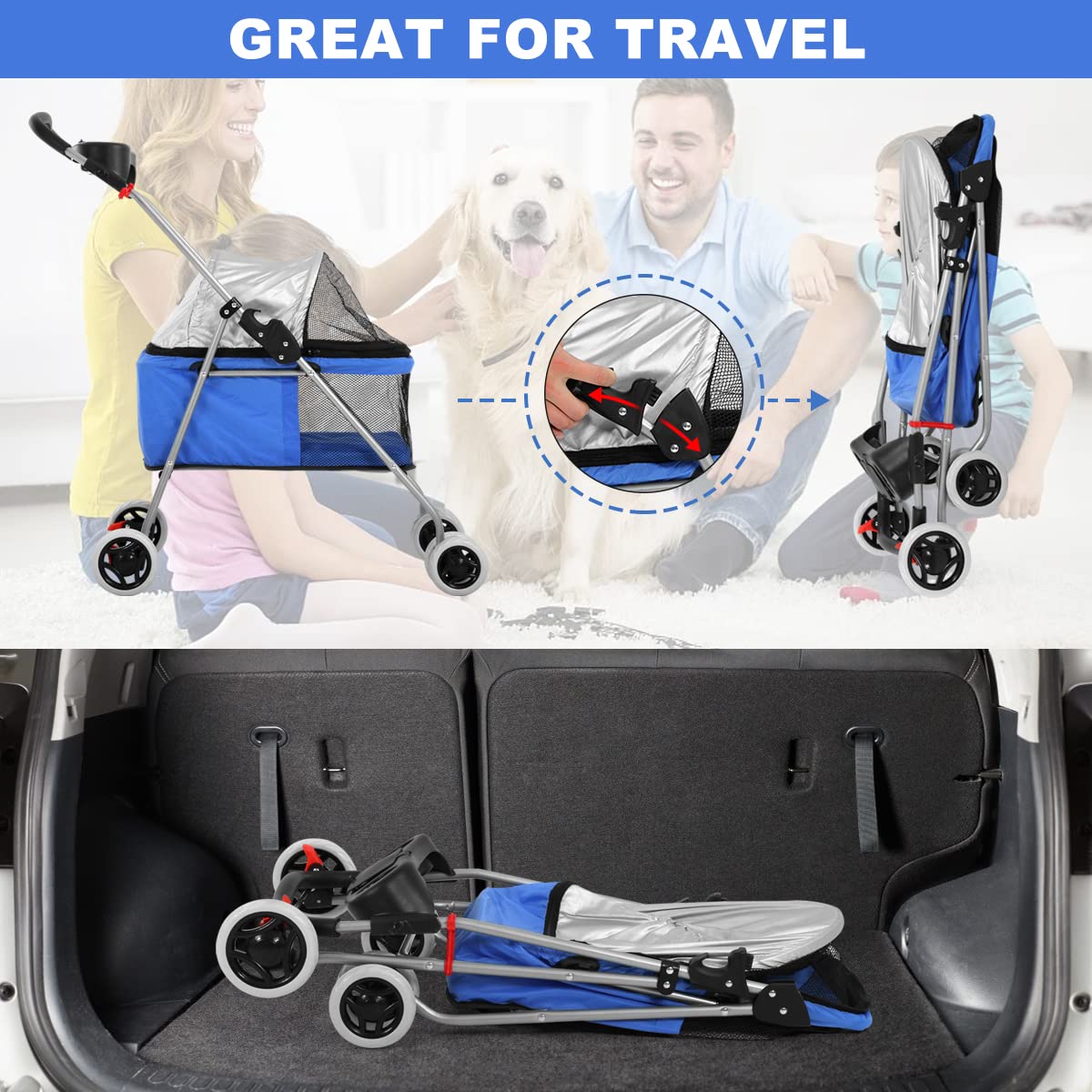 - [Foldable for Easy Storage] The pet stroller is lightweight and foldable, which means the stroller is easy to put in the trunk of a car. This stroller is only 11 pounds and requires no tools you can quickly unfold and fold it and your pet will have fun. This stroller is the best choice for your companion pet.