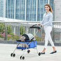 This pet stroller is compact and portable, just fold and open so your pet can enjoy a comfortable environment. The mesh design keeps the air flowing and the color of this dog stroller is very beautiful. The zippered mesh window is durable and you can also have more interaction with your pet. This dog stroller is big enough to accommodate 2 small baby dogs who will enjoy traveling or lounging in the dog stroller. Features Durable frame with long service life Padded foam bottom provides extra comfort Easy to fold into a compact size Safety brake wheels for easy maneuverability Dog stroller safety design, your pet in a safe environment No. 8 fiber zipper with over 5000 working life Ventilated, rainproof design to provide a comfortable environment Specifications -Color: Blue -Material Nylon - Package Include: 1 x Pet stroller - Open Size: 30(L) x 19(W) x 36.8(H) - Folded Size: 19(L) x 8.6(W) x 34(H) -Maximum Weight Recommendation: 35 Pounds