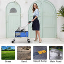 - [Durable Dog Stroller]The aluminum frame of the dog stroller and upgraded waterproof material for longer service life. Dog stroller EAV material made of wheels, can rotate 360 degree , for small slopes or uneven ground is a piece of cake, no crossing obstacles. This durable dog stroller, quickly travel with your pet.