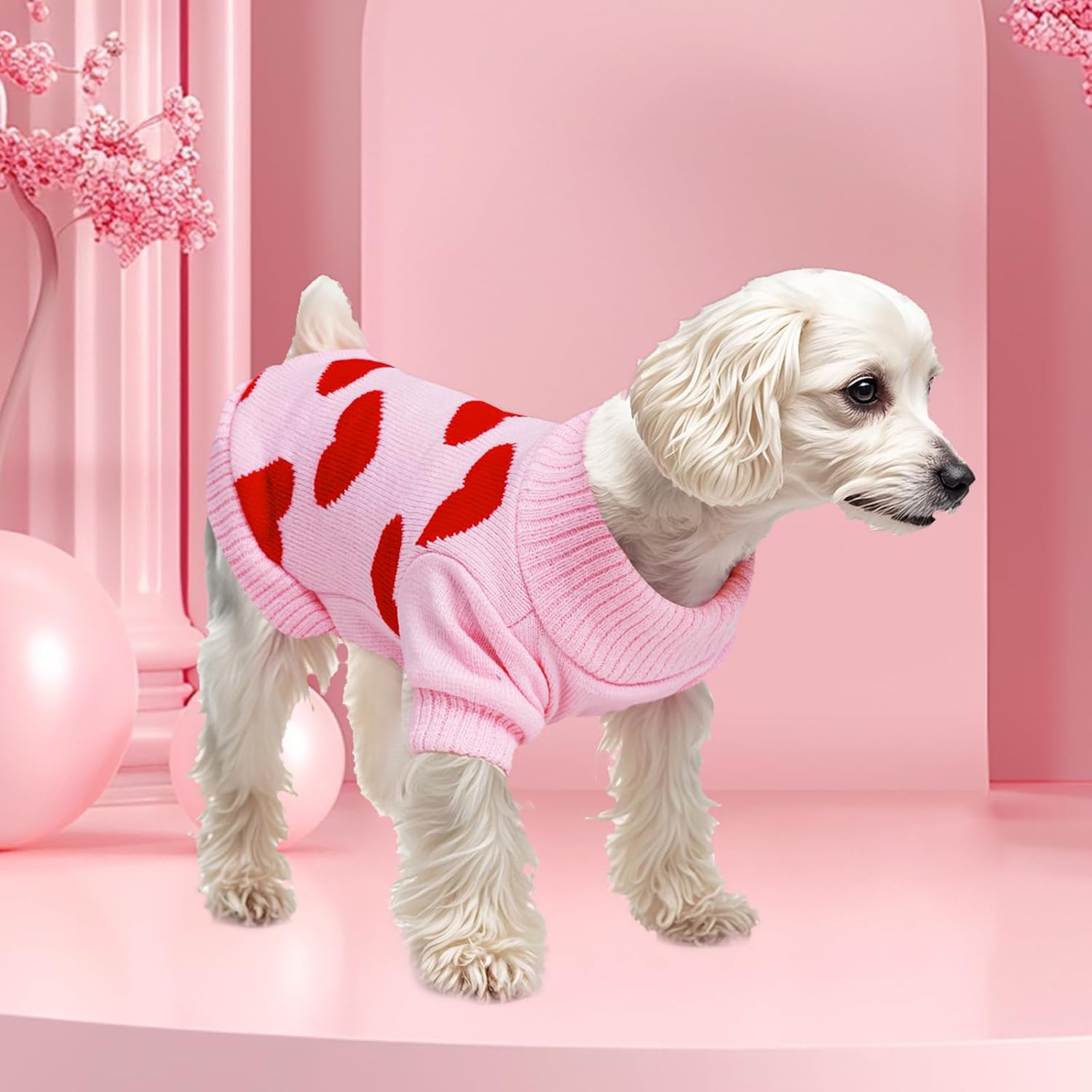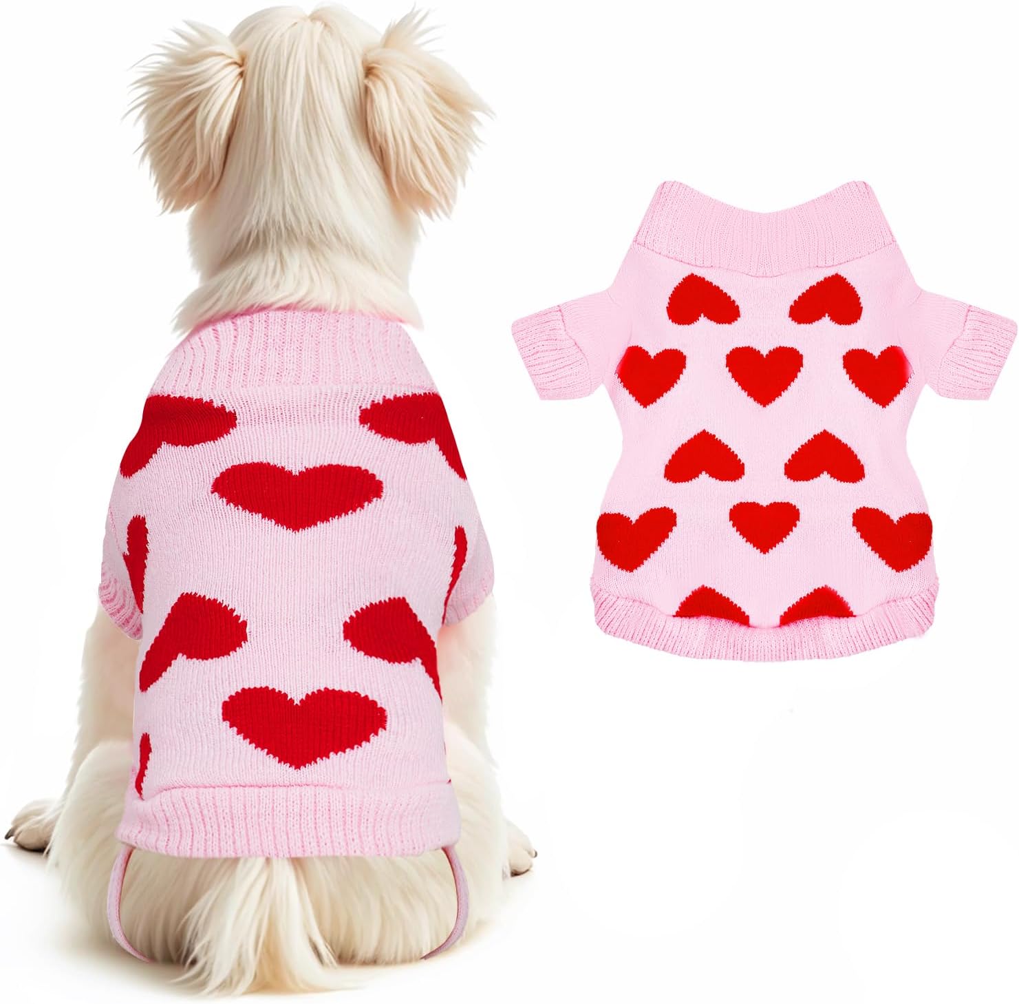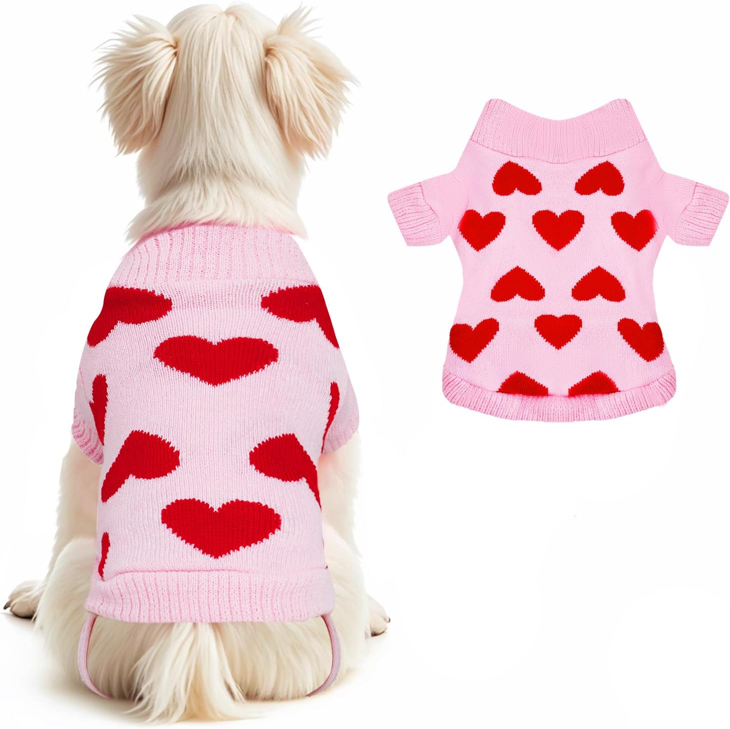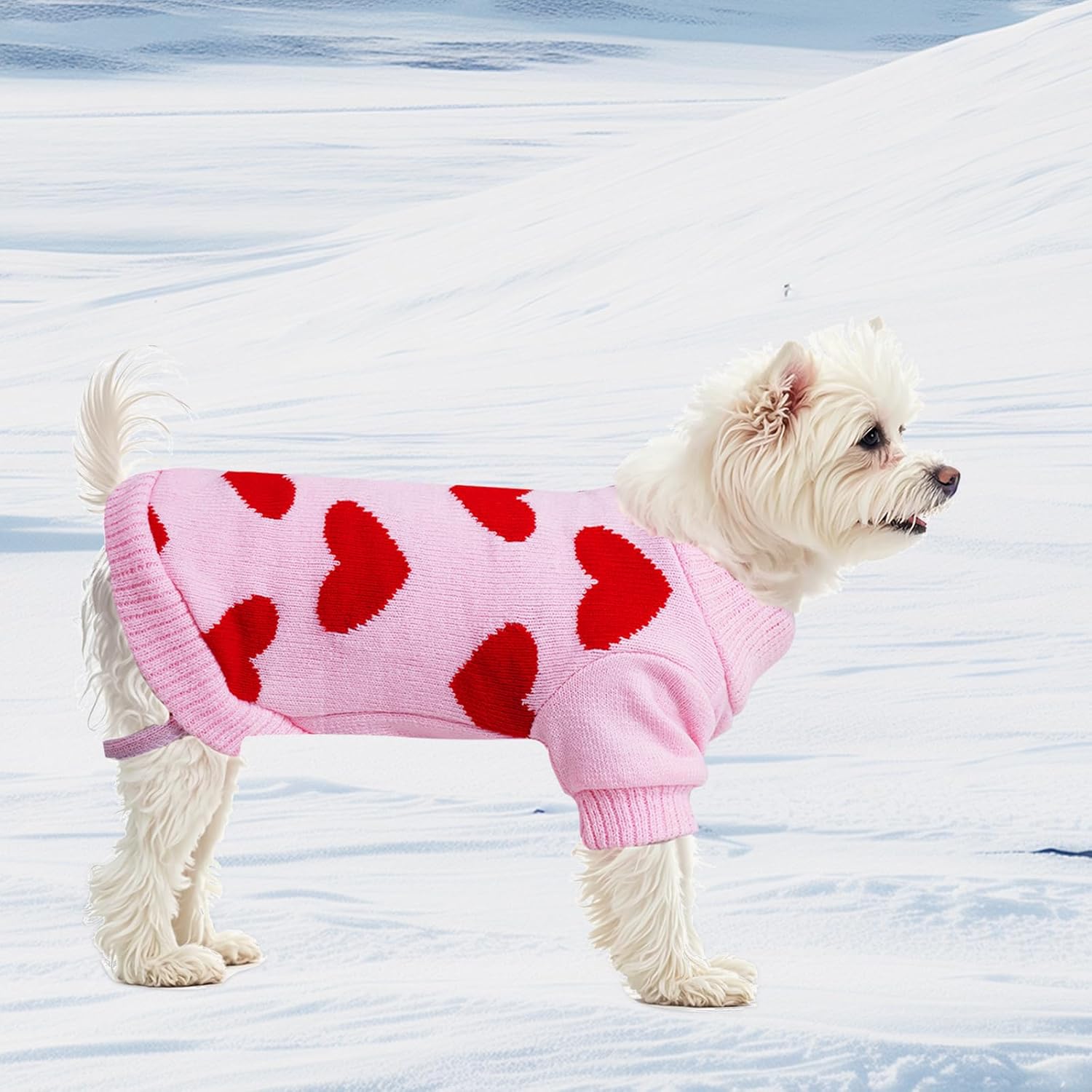 - Adorable Girl Dog Knit Sweater: This heart dog sweaters for small dogs have some adorable red heart patterns on it, which makes it cute and stylish for everyday wear or for specific holidays. The heart patterns on the dog heart sweater are made using knitting, so you don't have to worry about these hearts falling off
