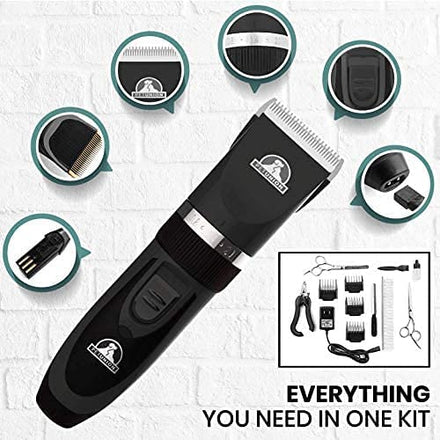 - Everything You Need in One Kit - If you're looking for the complete pet grooming kit for your dog, cat or other furry friend, look no further! Premium dog grooming clippers to help you professionally groom your pets coat and nails - Including clippers, multiple guards, nail trimmers, scissors, and more