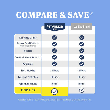 - EASY-TO-USE, LONG-LASTING: PetArmor Plus flea and tick treatment comes with one (1) waterproof topical application that provides your pet flea protection and control for one (1) month.