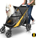 - All-Terrain Capability: Navigate various terrains seamlessly with Petbobi dog strollers for large dogs, boasting large 11 inch solid rear wheels with one-foot brake and 8 inch front solid wheels for 360° rotation and shock absorption