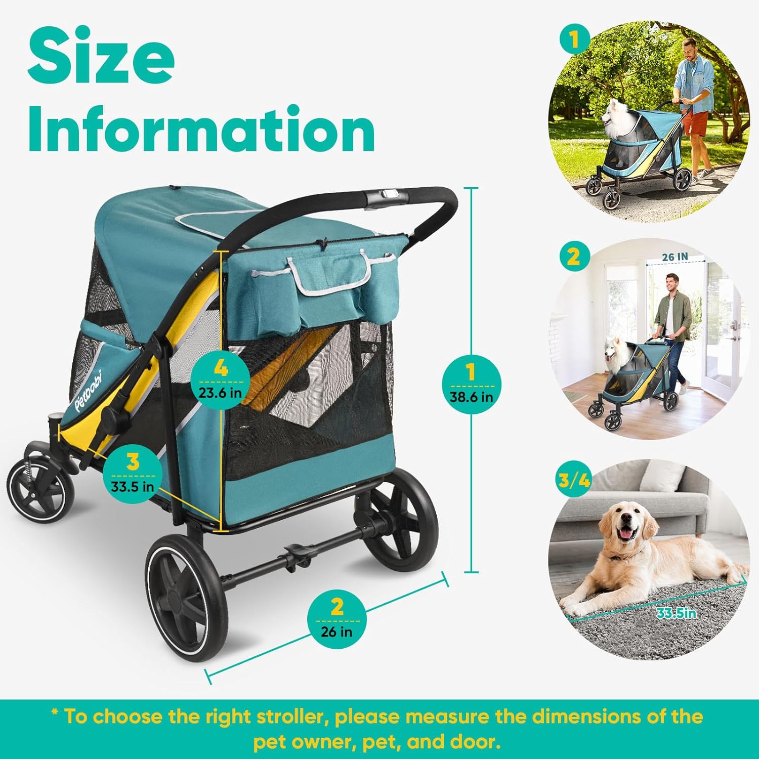 - Spacious and All-purpose: Petbobi dog stroller for medium dogs offers a roomy interior with dimensions of 34" L x 20" W x 25" H. Customize your outings with Petbobi's large dog stroller, ideal for the store, mall, hospital, travel, or just a walk