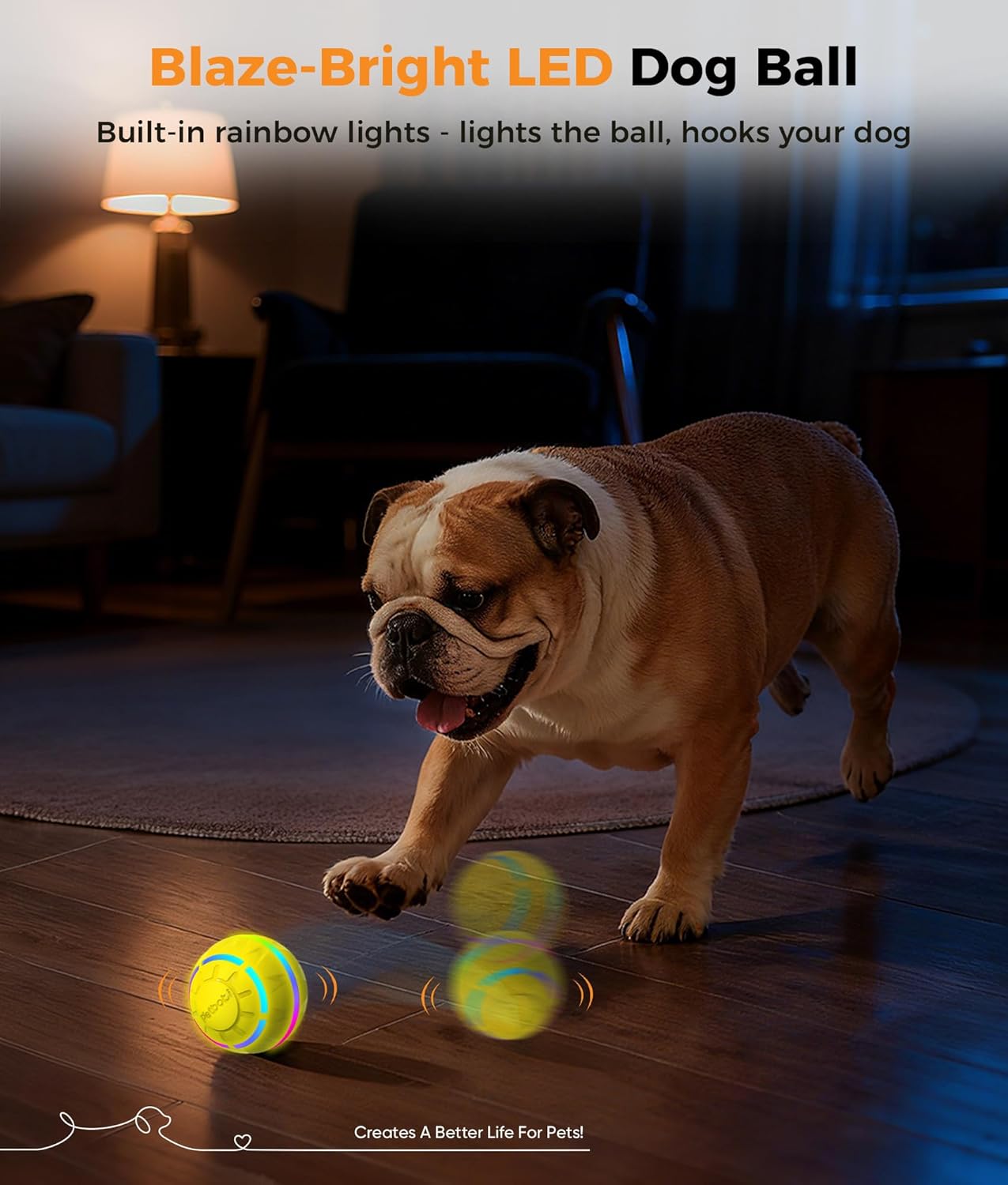 - LED Light Fun: Built-in LED light flashes as the interactive dog ball moves, catching your dog's attention. Perfect for indoor or dim-light play, adding visual excitement and helping dogs stay focused on the chase