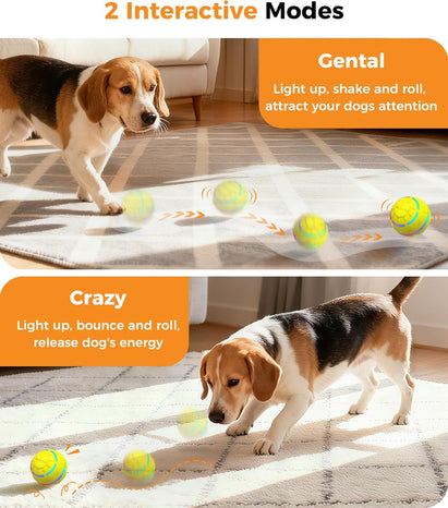 - Interactive Two Play Modes: Looking for a fun way to keep your dog engaged? With quick press inside the shell, choose gentle rolling or crazy bouncing and let the chase begin! The dog ball runs in timed intervals - helping dogs stay active and relaxed