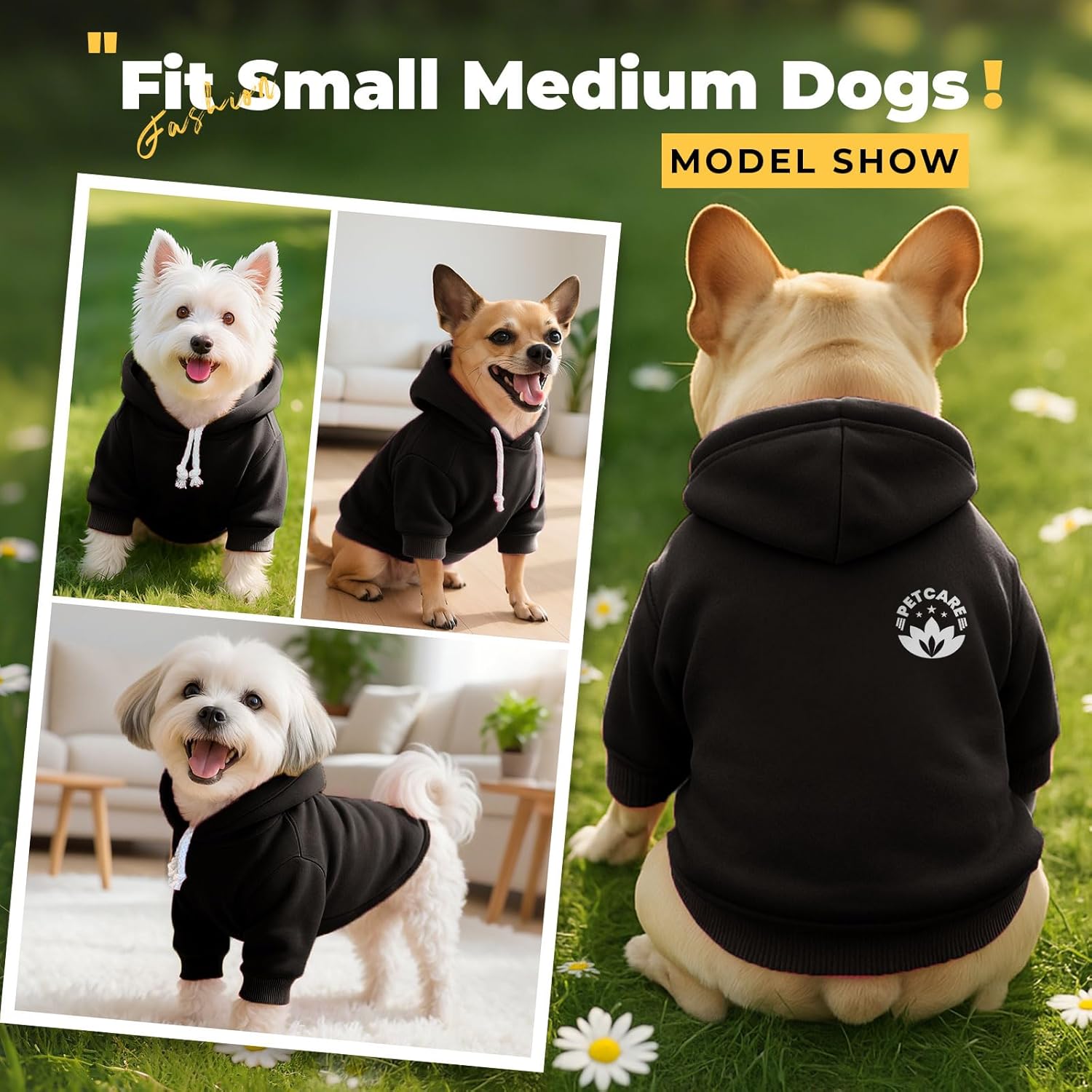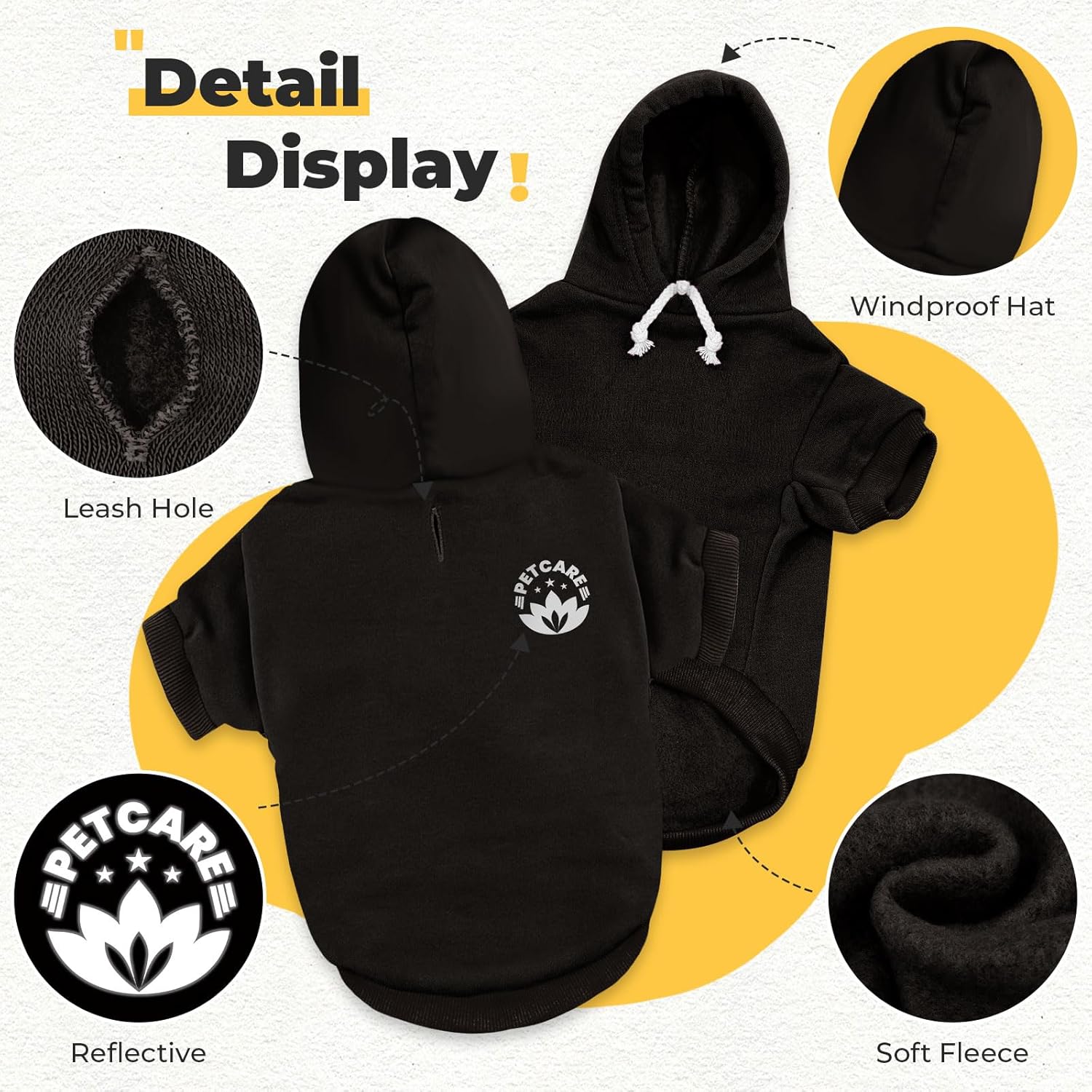 PETCARE Dog Hoodie Sweaters for Small Medium Dogs Cats Cute Soft Warm Fleece Puppy Sweaters Dog Clothes Hoodies Sweatshirt Reflective Fall Winter Chihuahua Yorkie French Bulldog Outfits, Black