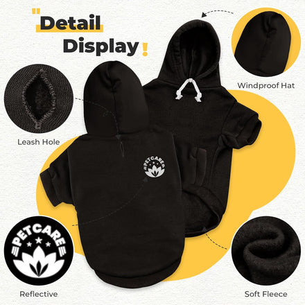 • Adorable Hood with Reflective Design - Our basic dog hoodie features a cute hood to keep your pet’s head warm, making pets appear more stylish and cute. Ideal choice for winter walks. Reflective "PETCARE" logo can enhance the pet's visibility in low-light conditions, ensuring safety, especially during outdoor activities or nighttime walks. Reflective design adds convenience while enhancing the stylish look of this minimalist solid-color design