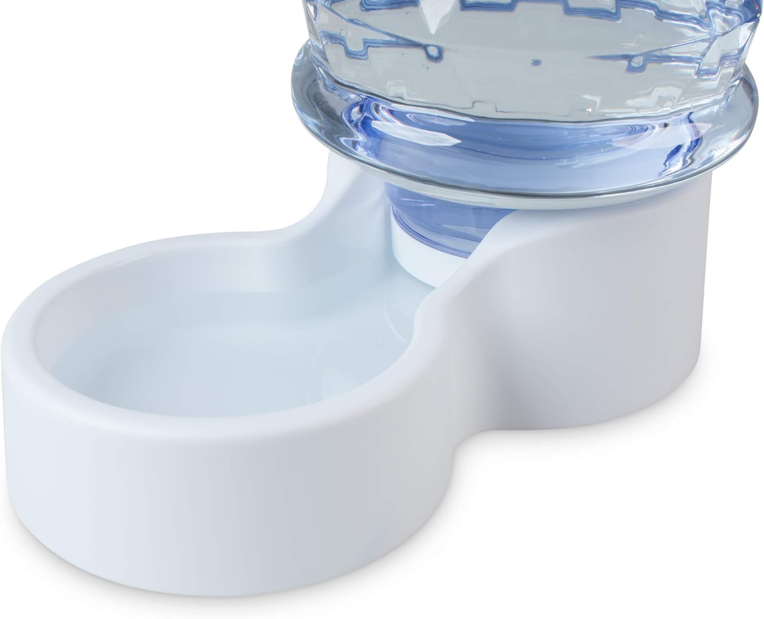 - EASY TO USE: Large removable cap for easy refilling. Large water bowl attaches and locks into place for added security. Cat & dog water dispenser uses gravity to ensure a consistent supply of water. Perfect for pet parents with busy lifestyles.