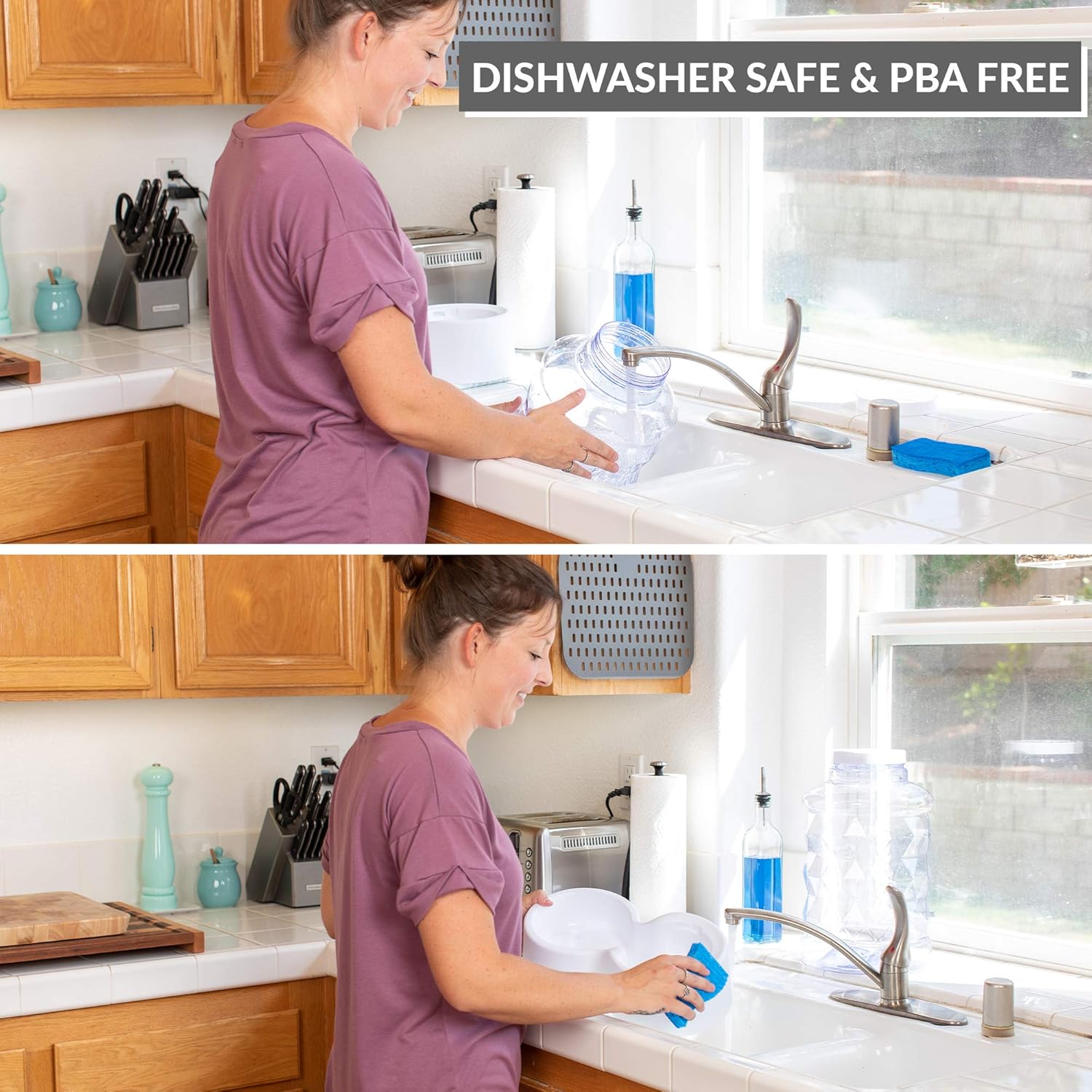 - EASY TO CLEAN: Water basin, lid, and reservoir easily separate for cleaning. Water basin and lid are top rack dishwasher safe! Hand wash water bottle with soap and warm water.
