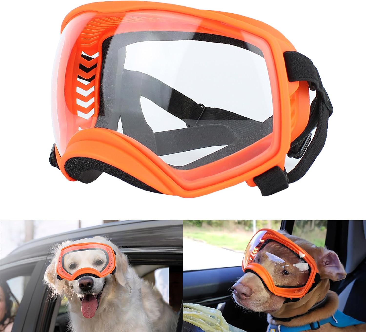 - Best eye protection: We found that dogs like to stick their heads out of the window when driving, but dust, insects, rain or snow will go into dog’s eyes and even hurt them. These glasses are designed to protect your dog's eyes.